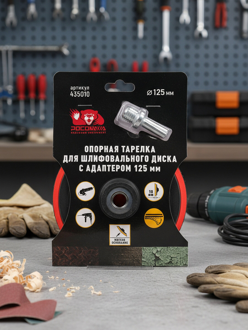 Тарелка опорная Росомаха d125 мм с адаптером — оптимальное решение для быстрой и ровной шлифовки: надёжность, универсальность, экономия времени.