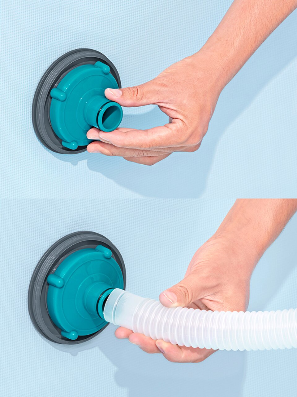 - Эффективная очистка: вакуумная насадка, требующая соединения с фильтр-насосом, позволяет быстро и качественно очищать бассейн от любых загрязнений.
