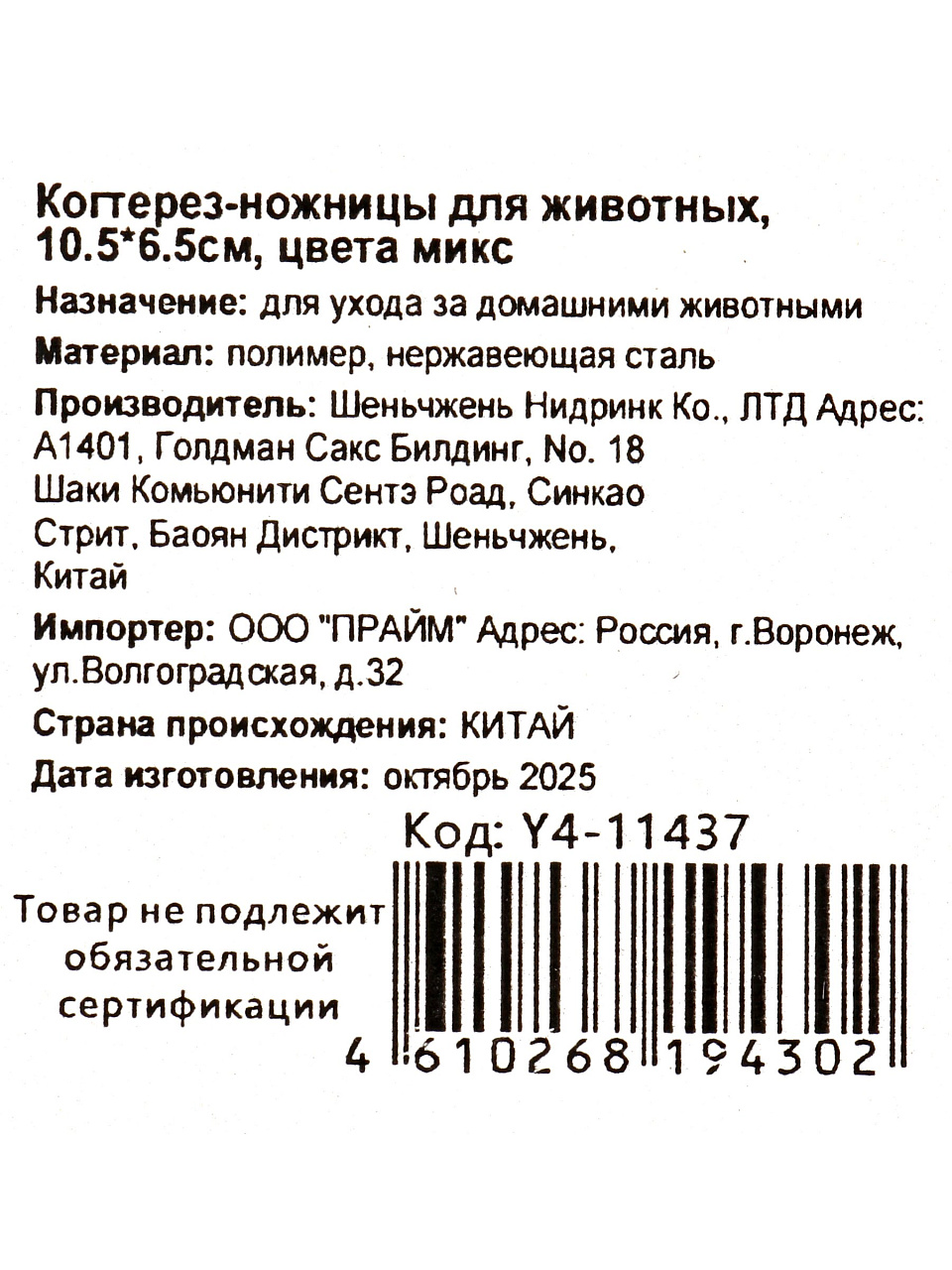 Когтерез-ножницы для животных 10.5х6.5 см Y4-11437: аккуратный уход за когтями питомца дома и на даче, безопасно и удобно — экономьте на визитах к грумеру!