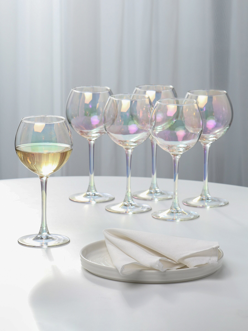 Бокалы для вина Glasstar Радуга Лиловая дымка — набор из 6 выдувных бокалов по 350 мл из гладкого стекла: стильный подарок и идеальный выбор для сервировки на праздник или уютный ужин.