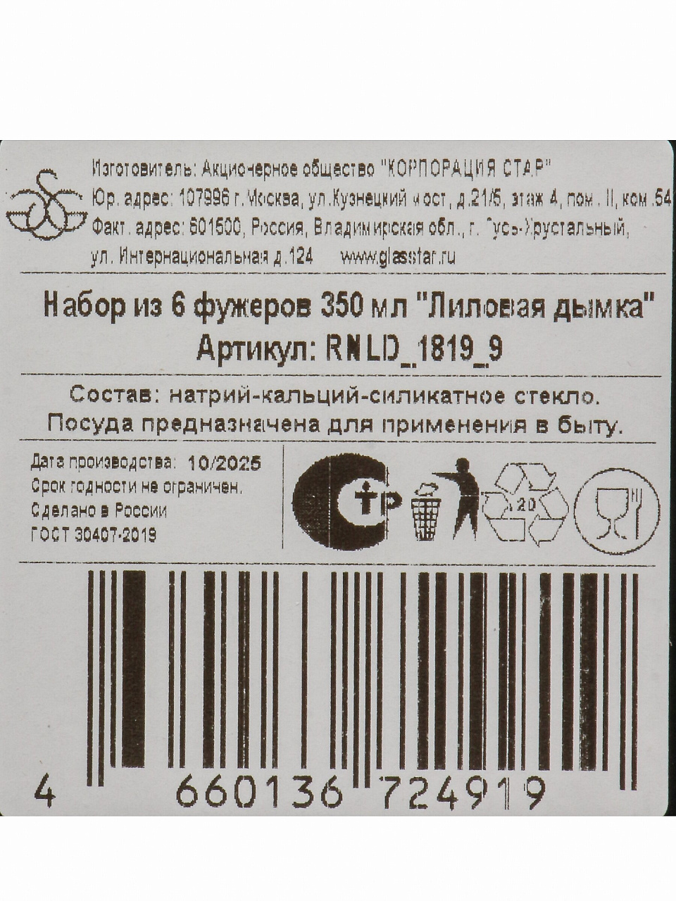 Вы можете приобрести «Бокал для вина, 350 мл, стекло, 6 шт, Glasstar, Радуга Лиловая дымка, RNLD_1819_9» и другие товары в нашем интернет-магазине в Армавире по низким ценам и с бесплатным самовывозом.