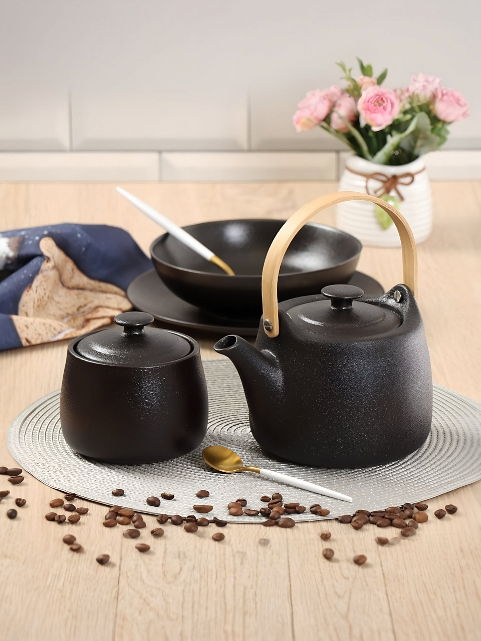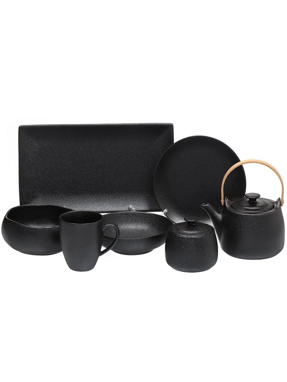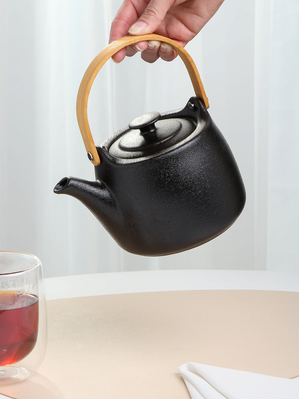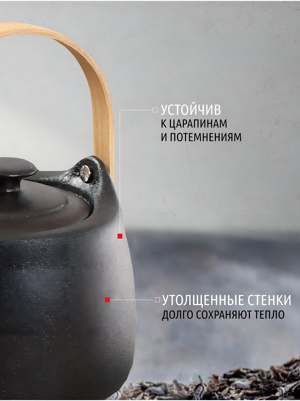 - черный чайник с полуматовым покрытием. Внутренние и внешние поверхности чайника одинаковы.