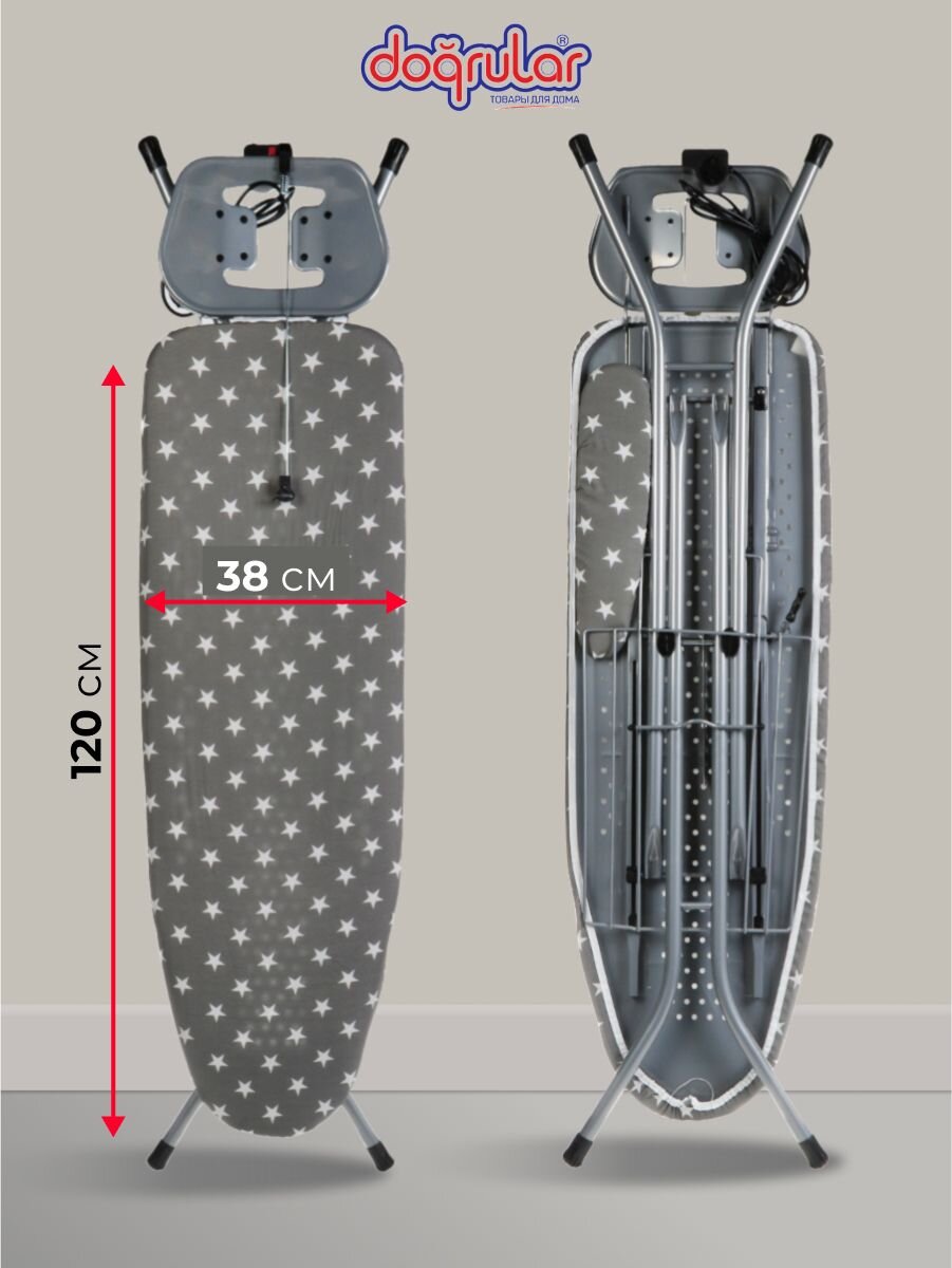 Вы можете приобрести «Доска гладильная 120х38 см, Капитоль тефлон, подставка для утюга, встроенная розетка, полка для белья, удлинитель 2 м, Dogrular, серая» и другие товары в нашем интернет-магазине в Белгороде по низким ценам и с бесплатным самовывозом.