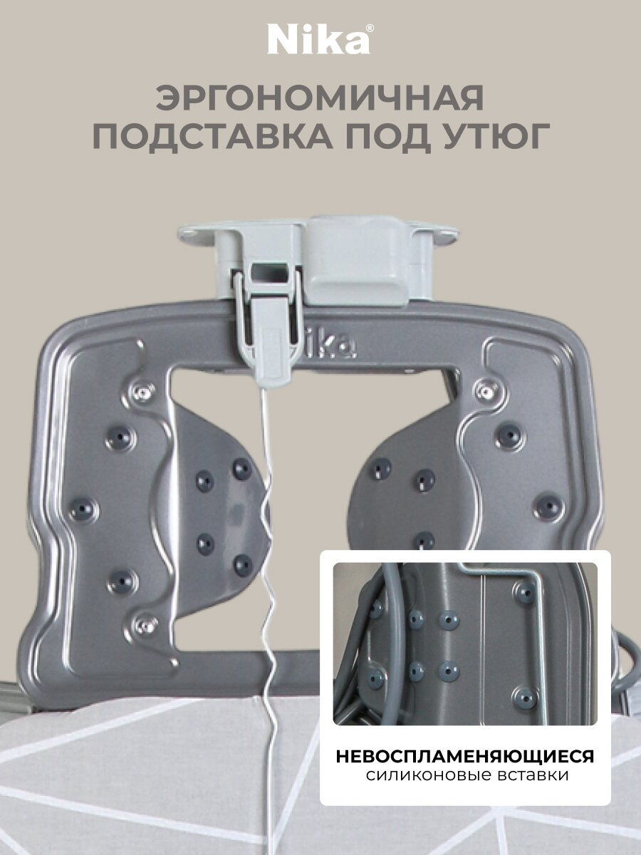 Вы можете приобрести «Доска гладильная 122х40 см, подставка для утюга, гладильный рукав, встроенная розетка, полка для белья, удлинитель 1.9 м, Nika, линии на сером» и другие товары в нашем интернет-магазине в Нижнем Новгороде по низким ценам и с бесплатным самовывозом.