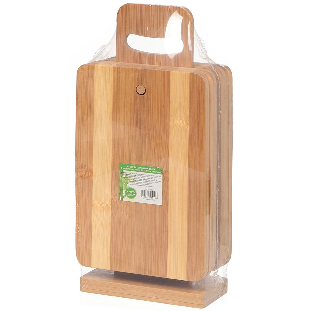 Набор разделочных досок - это незаменимые аксессуары на любой кухне. Они изготовлены из натурального бамбука, обеспечивающий длительный срок эксплуатации изделий. В отличие от других досок (пластик, бук или береза) данные предметы не только легко моются и не скапливают бактерии, но и не расслаиваются при регулярном использовании. Благодаря подставке ваши доски всегда будут на месте.