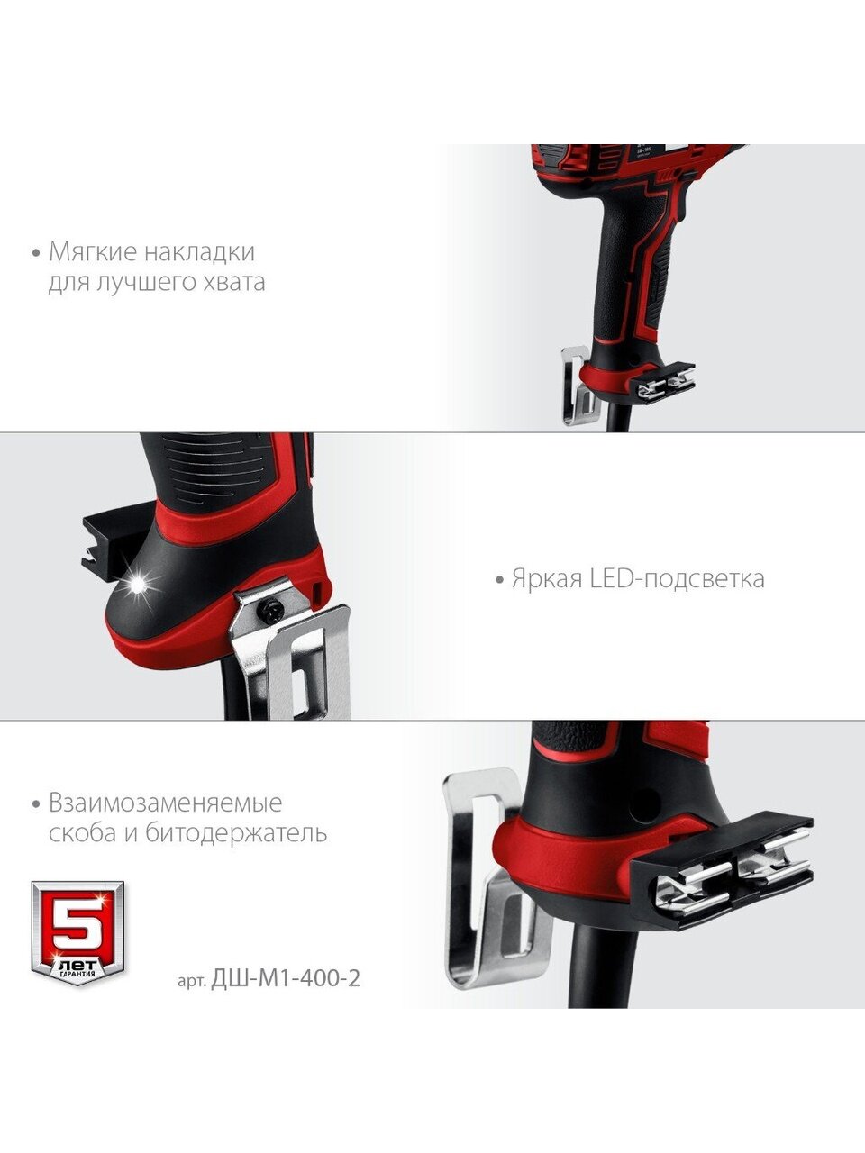 Дрель-шуруповерт сетевой Зубр, ДШ-М1-400-2 обладает всеми преимуществами аккумуляторного инструмента, при этом имеет улучшенные характеристики. Благодаря широкой функциональности и простоте использования, он отлично подходит для различных работ. Отсутствие зависимости от заряда батареи обеспечивает более высокую производительность по сравнению с аккумуляторными моделями, а надежность и долговечность делают его отличным выбором для профессионального использования. Двухскоростной редуктор шуруповерта обеспечивает оптимальный баланс между крутящим моментом и частотой вращения.