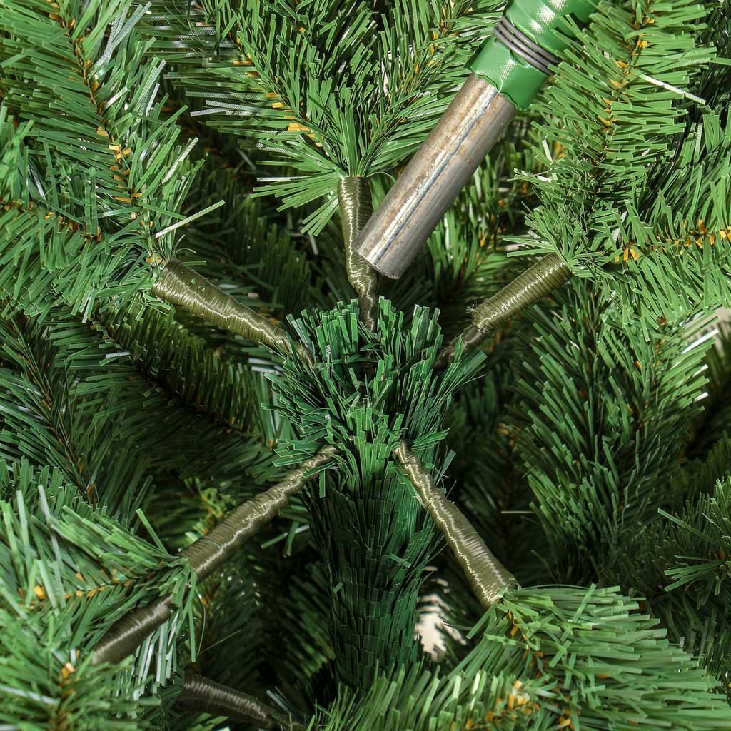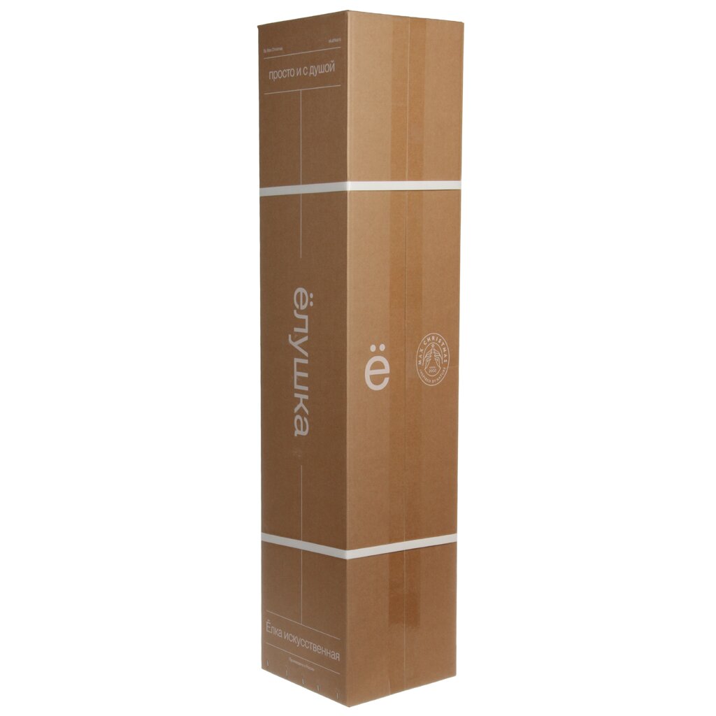 Елка состоит из 8 ярусов, ветки крепятся разгибающимся способом к ствольной разборной конструкции. В комплекте — пластиковая подставка, сборка занимает 10–15 минут.