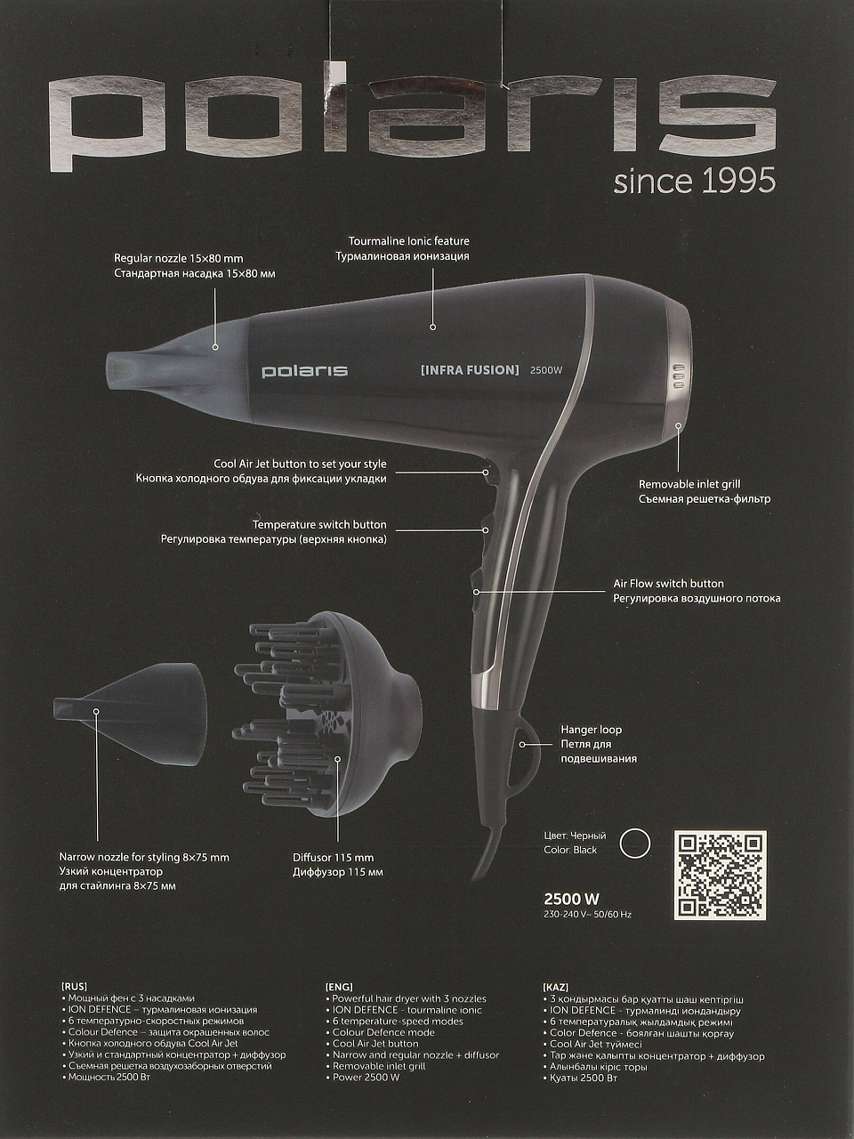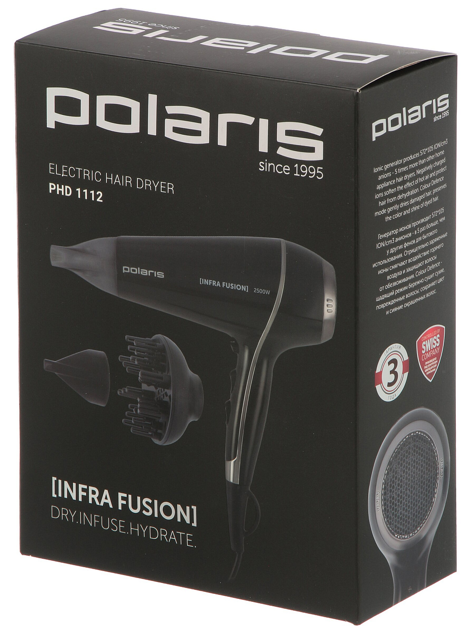 Фен Polaris PHD 1112 — мощная укладка за 5 минут: 2500 Вт, 3 режима, 2 скорости, оптимально для дома и дачи, выгодная цена.