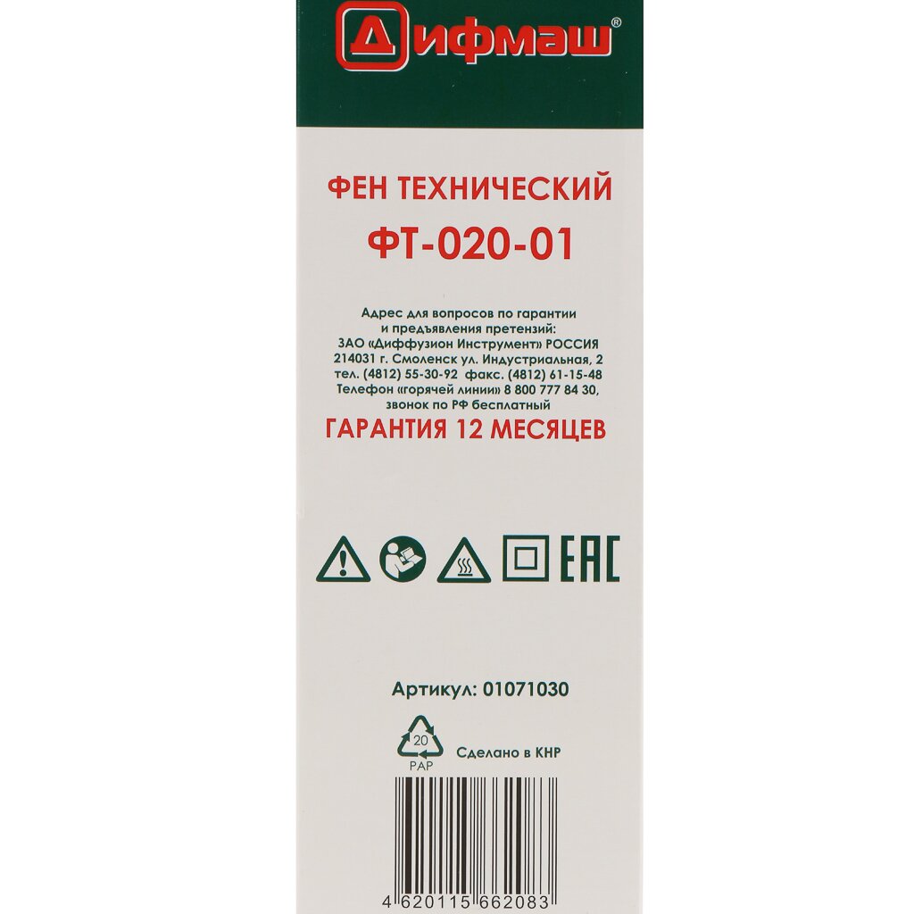 Преимущества строительного фена Дифмаш ФТ-020-01: