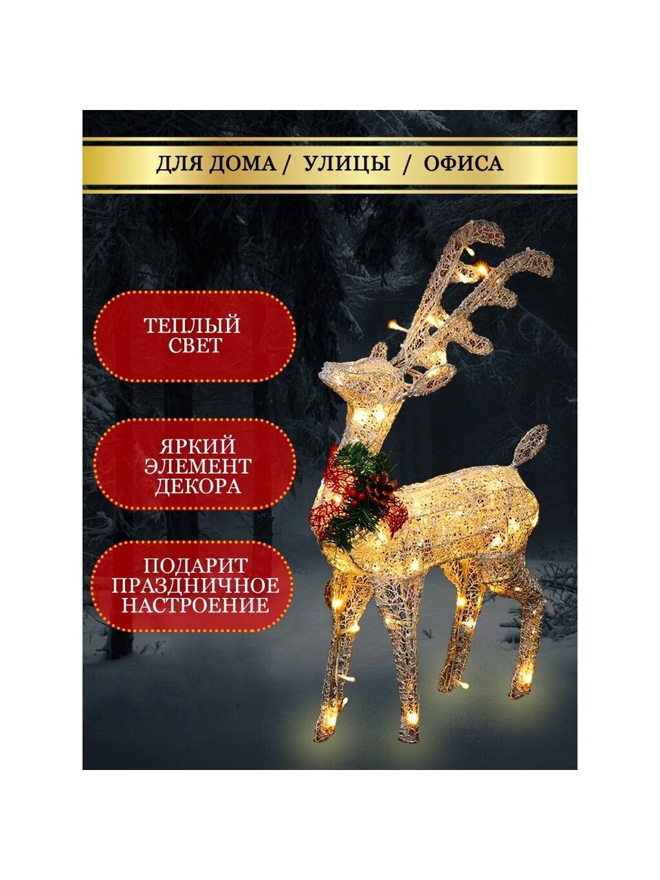 Оригинальный дизайн фигурки оленёнка и красочное исполнение, с использованием новогодней подсветки, создадут праздничное настроение. Почувствуйте волшебные минуты ожидания праздника!