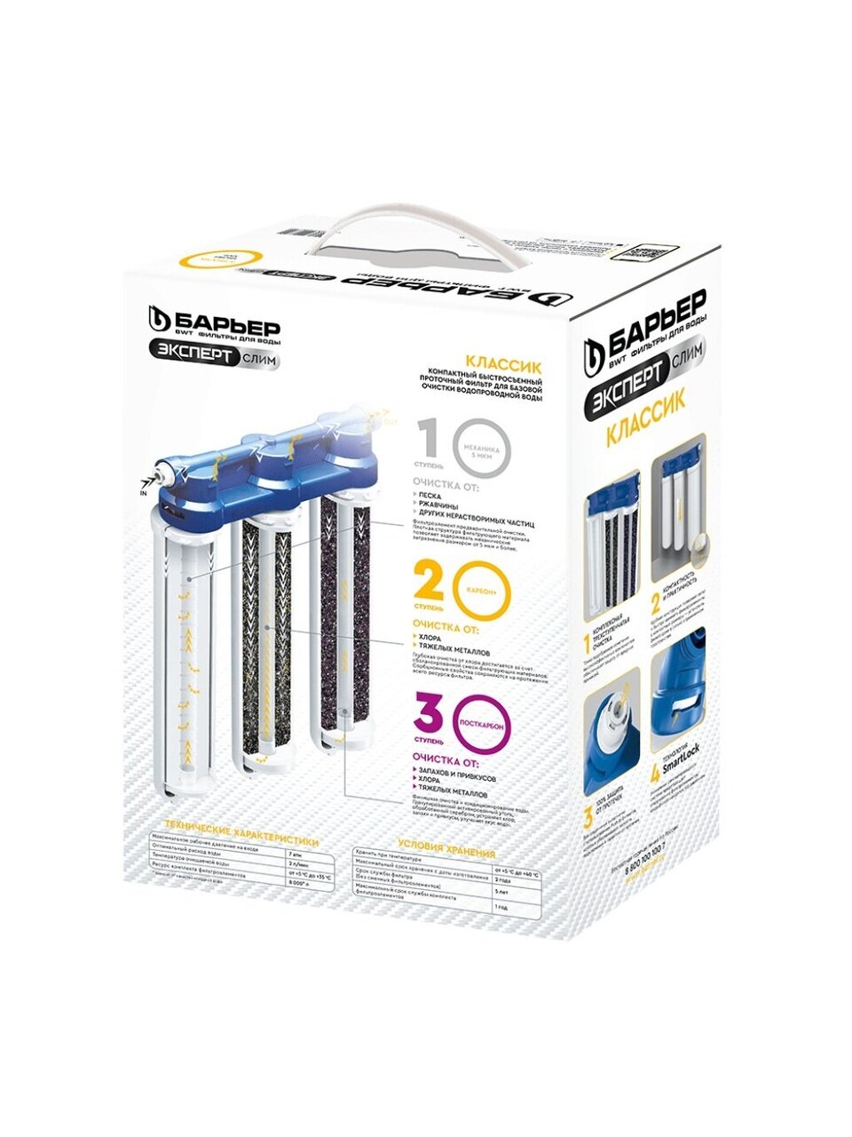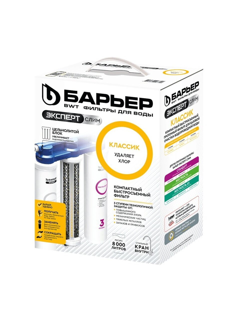 Вы можете приобрести «Фильтр для воды Барьер, Эксперт Slim Классик, для холодной воды, система под мойку, от хлора, 3 ступ» и другие товары в нашем интернет-магазине в Твери по низким ценам и с бесплатным самовывозом.
