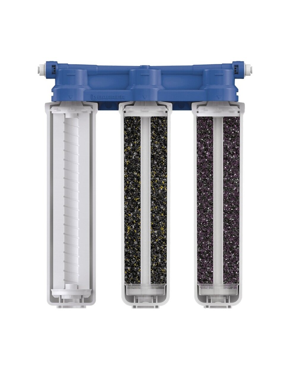 Изменённая версия популярной модели Барьер Expert обеспечивает комплексную очистку от солей жесткости и всех основных содержащихся в ней вредных примесей. Предотвращает образование накипи за счет удаления из состава воды солей жесткости. Картриджи всё так же можно менять одной рукой, теперь положение фильтрующих элементов статично.
