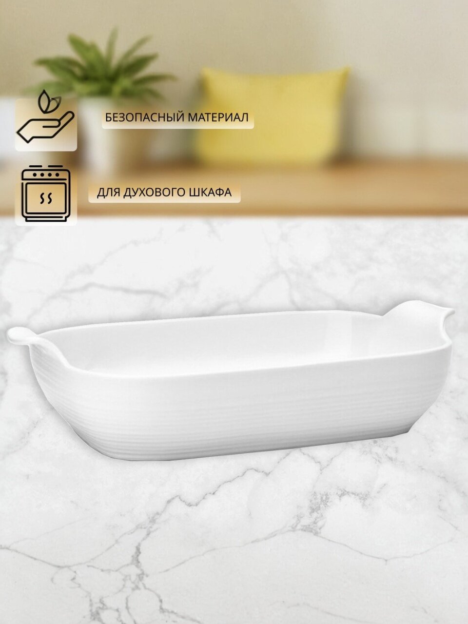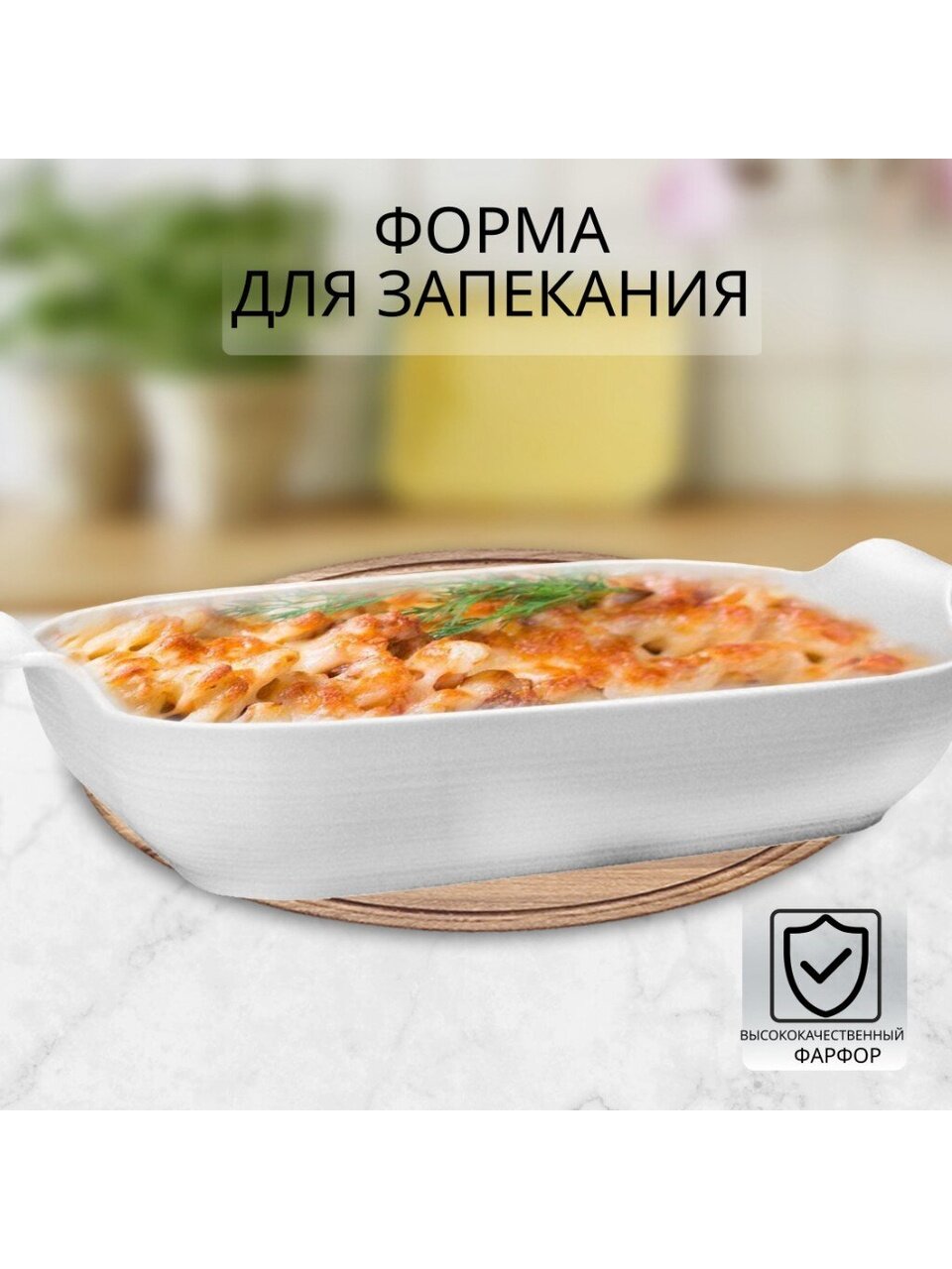 Фарфор сохраняет вкус продуктов, не впитывает запахи, легко моется даже в посудомоечной машине. Универсальный размер позволяет использовать форму для запекания мяса, рыбы, овощей и выпечки, а стильный внешний вид делает её отличным подарком.