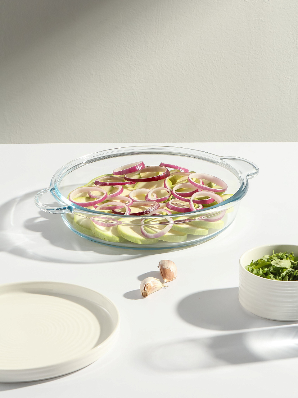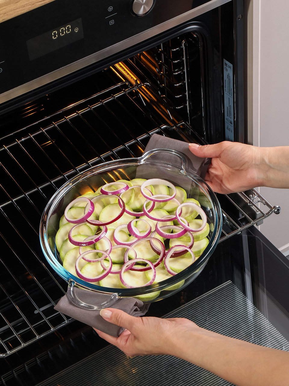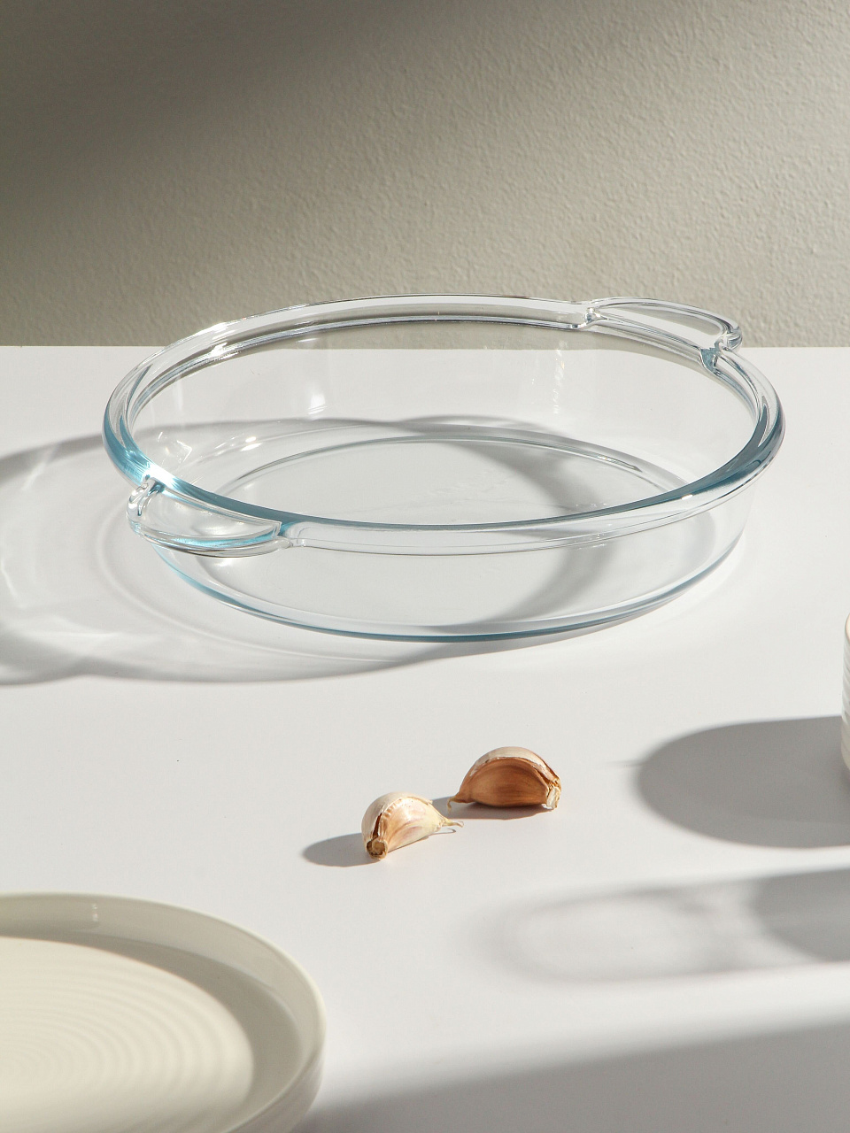 Как выбрать форму для запекания? Для семьи из 2-4 человек оптимален диаметр 24 см и объём 1,8 литра — этого достаточно для основного блюда или пирога. В отличие от металлических и керамических аналогов, стеклянная форма Borcam прозрачна: вы контролируете степень готовности блюда в процессе. Подходит ли для СВЧ? Да, форма совместима с микроволновкой и духовкой, что расширяет сценарии использования на кухне и позволяет использовать одну посуду для разных целей.