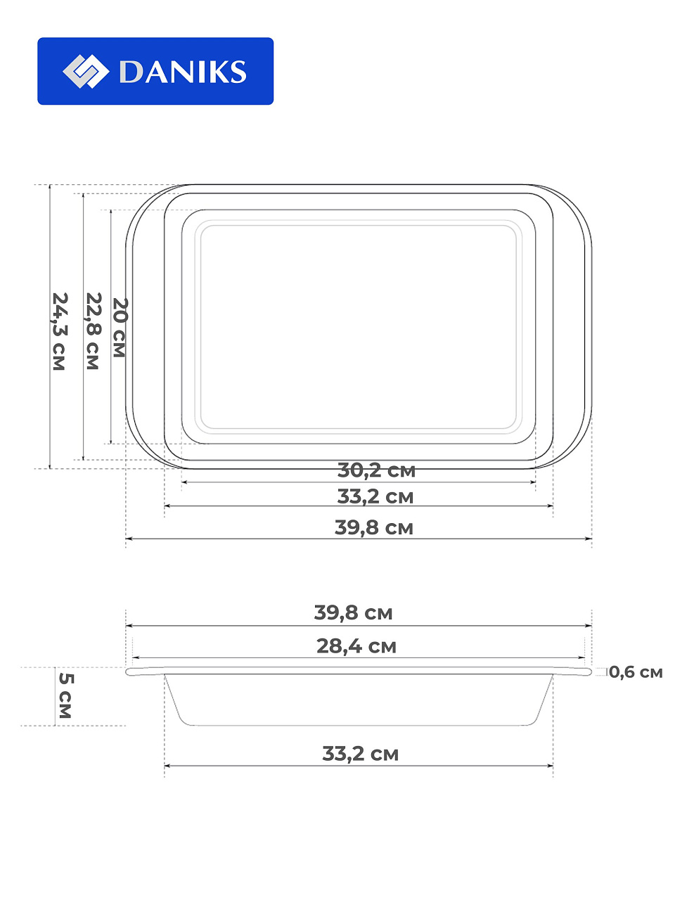 Внутренние размеры: ширина 24 см, длина 39,8 см, высота 5 см. Это удобно для приготовления больших порций мяса, рыбы, овощей или выпечки.