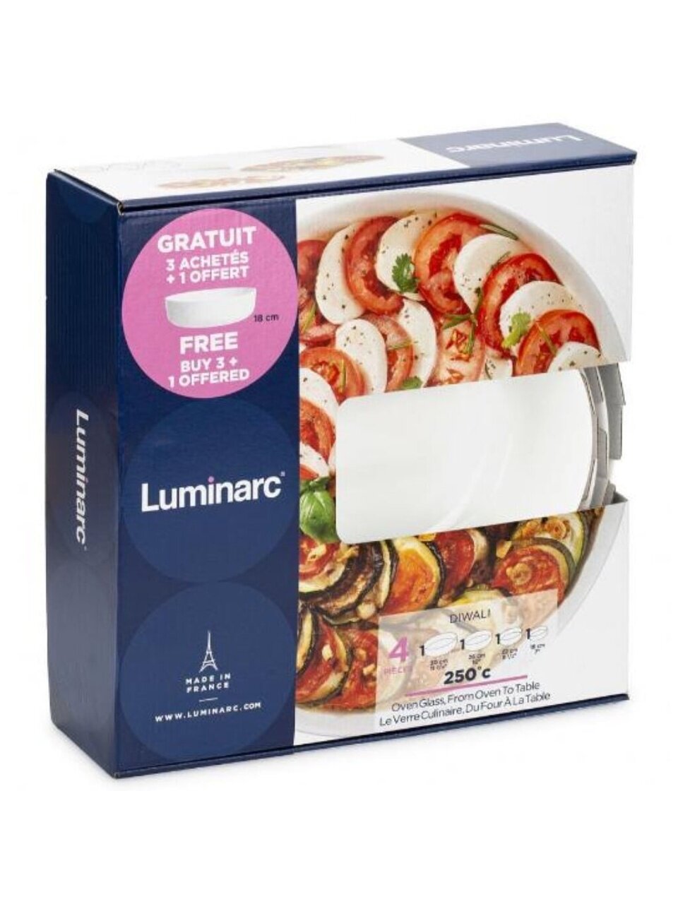 Вы можете приобрести «Форма для запекания стекло, 4 шт, 18, 22, 26, 30 см, 1.3, 2, 2.8, 4 л, круглая, белая, Luminarc, Diwali, N9348» и другие товары в нашем интернет-магазине в Ельце по низким ценам и с бесплатным самовывозом.