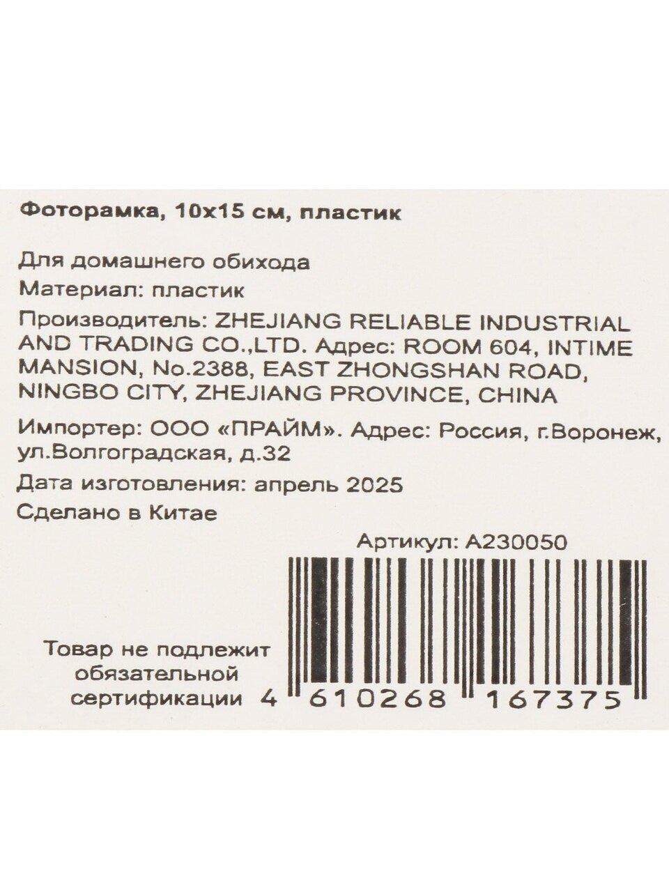 Фоторамка 10х15 см из пластика – стильное решение для оформления любимых фотографий. Современный дизайн гармонично впишется в любой интерьер, подчеркивая индивидуальность пространства. Прочный материал обеспечивает долговечность и легкость ухода. Идеальный выбор для создания уютной атмосферы в доме или офисе. Отлично подходит для подарка.