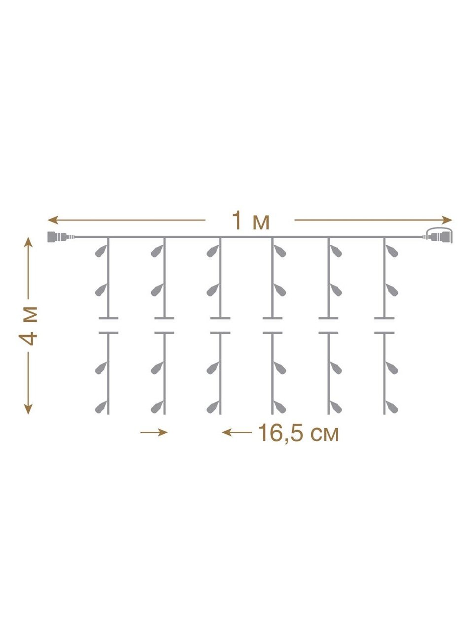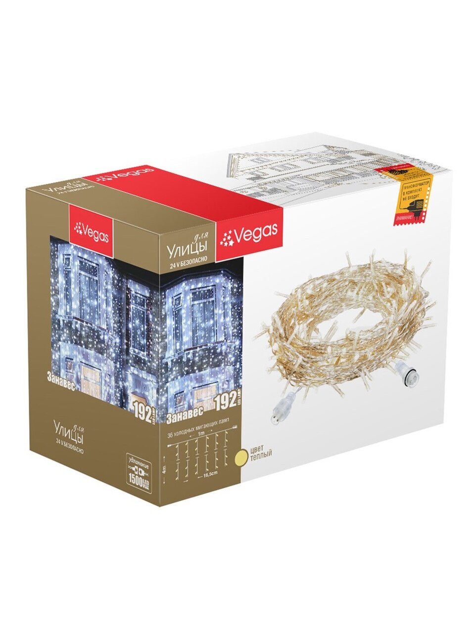 Вы можете приобрести «Гирлянда 192 лампы, 4х1 м, 1 режим, Занавес, Vegas, свет теплый, прозрачная, на улице/в помещении, сетевая, LED, мигание, 6 нитей, 55029» и другие товары в нашем интернет-магазине в Липецке по низким ценам и с бесплатным самовывозом.