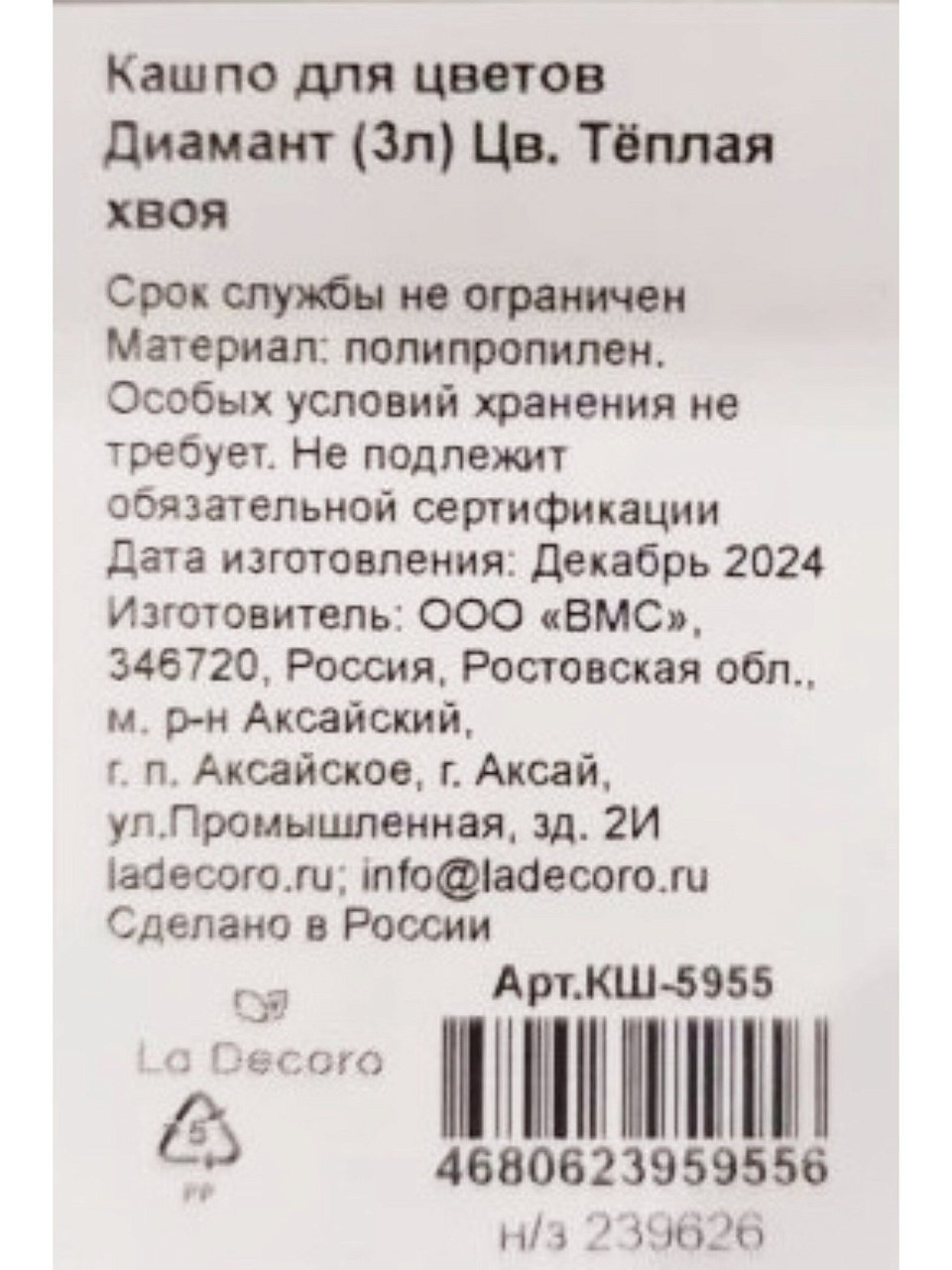 Вы можете приобрести «Кашпо пластик, 3 л, 17.7х17.7х16.5 см, универсальное, теплая хвоя, La Decoro, Диамант, КШ-5955» и другие товары в нашем интернет-магазине в Липецке по низким ценам и с бесплатным самовывозом.