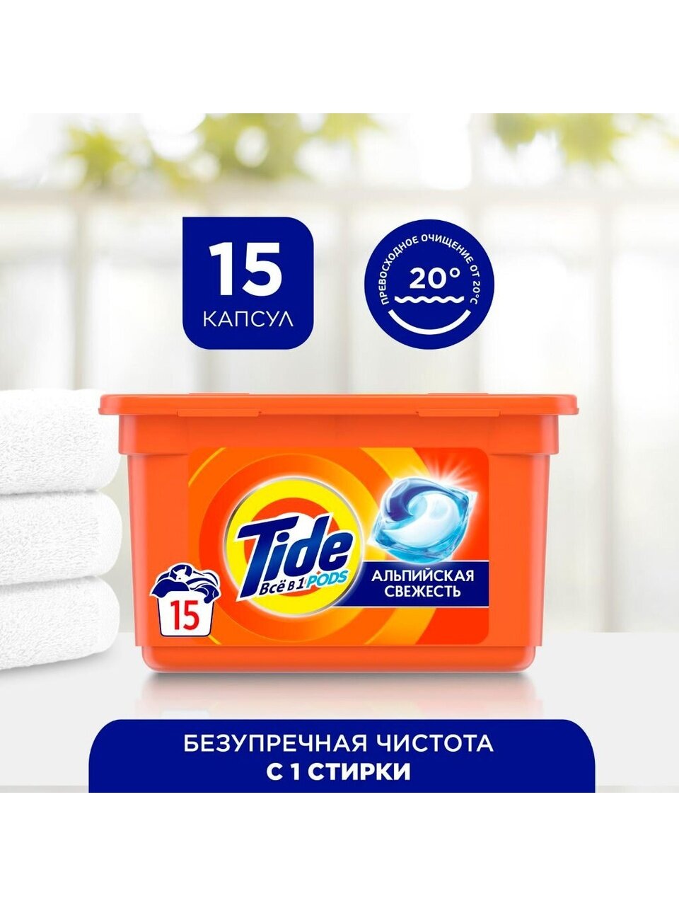 Вы можете приобрести «Капсулы для стирки Tide, Все в 1 Pods Альпийская свежесть, 15 шт, капсула 25.2 г» и другие товары в нашем интернет-магазине в Коврове по низким ценам и с бесплатным самовывозом.