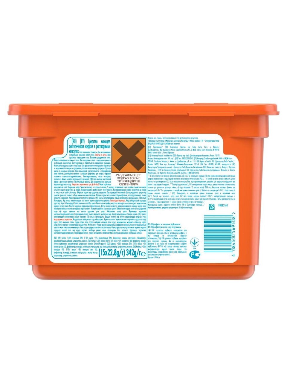 Точная дозировка позволяет отстирать целый барабан вещей всего одной капсулой. Специальная формула быстро действует, удаляя загрязнения, очищает даже стойкие пятна и сохраняет яркость цвета стирка за стиркой.