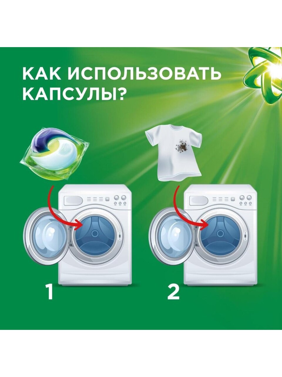 Первое средство для стирки с тремя раздельными компонентами, которые работают вместе. Они очищают, выводят пятна и придают тканям яркость. Компоненты находятся в отдельных секциях капсулы, что предотвращает их смешивание до начала стирки.
