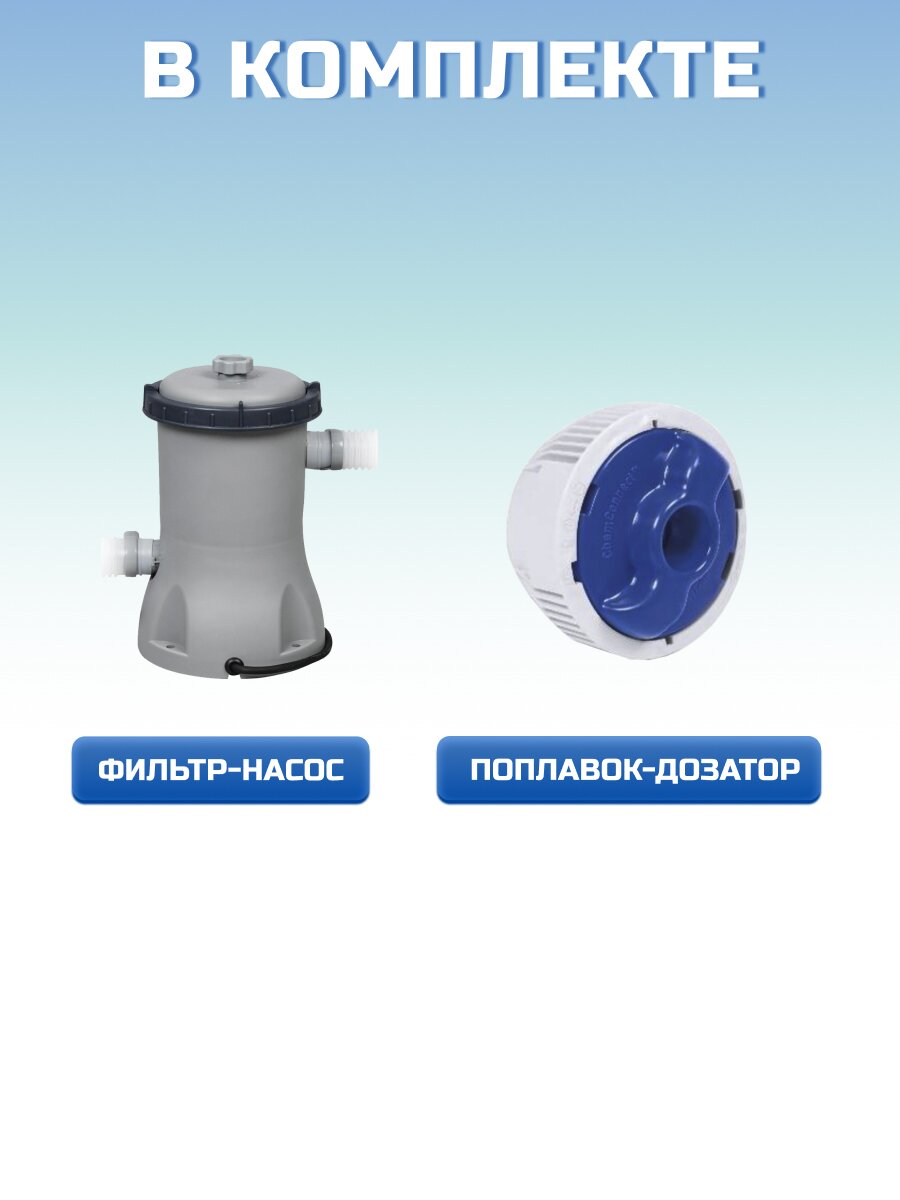 - В комплекте фильтр-насос для поддержания чистоты воды.