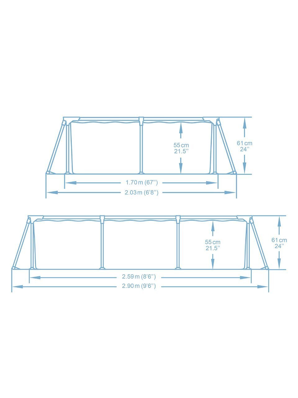 - Монтажный размер бассейна, см290x203