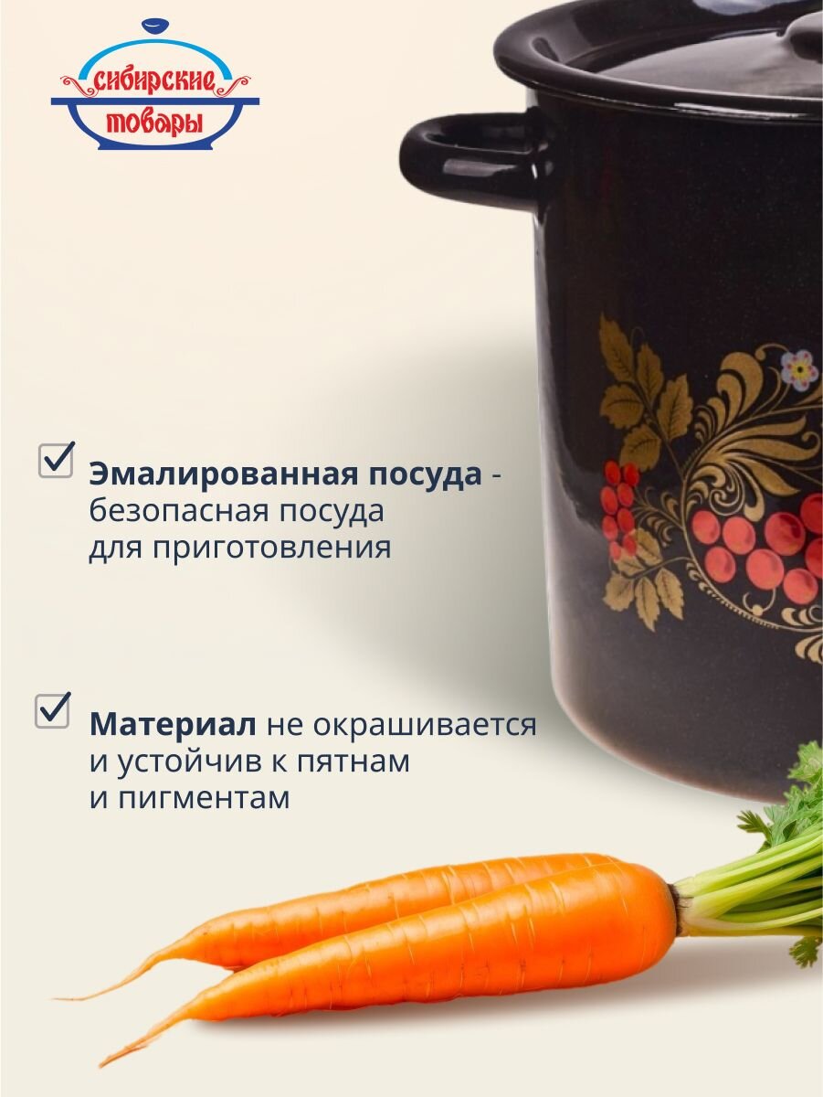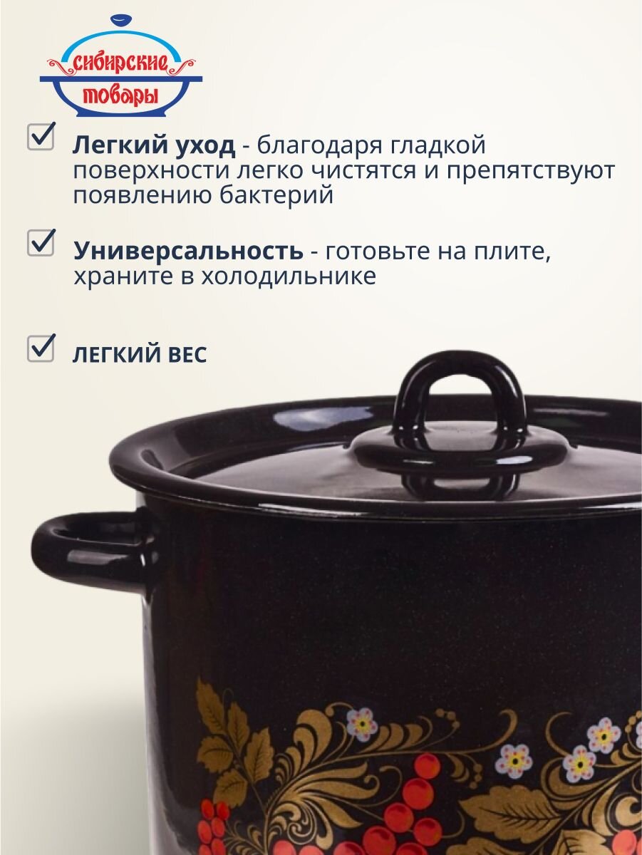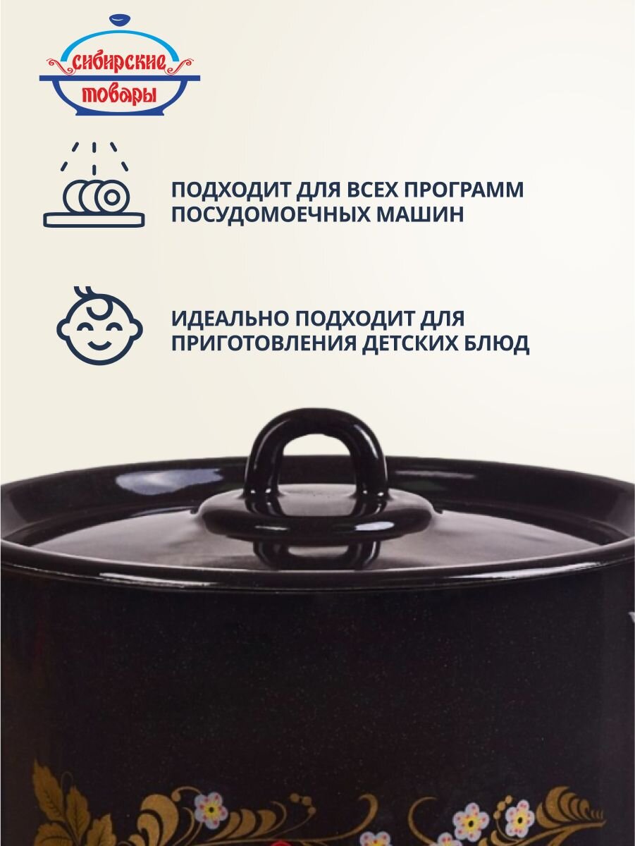 Кастрюля эмалированная Сибирские товары Рябинушка 5.5 л — идеальный выбор для семьи: прочная сталь, модный черный дизайн, подходит для всех плит и посудомоечной машины.