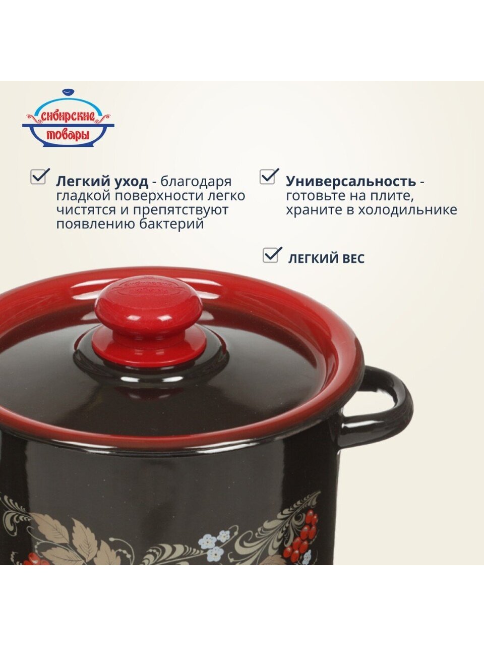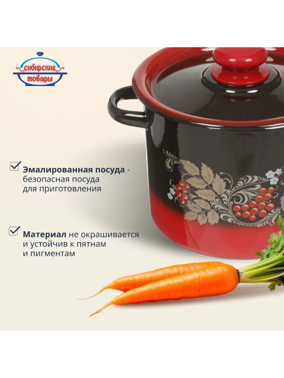 Эмалированная кастрюля объёмом 3.5 литра от бренда «Сибирские товары» — надёжный выбор для тех, кто ищет практичную посуду для ежедневного использования. Цилиндрическая форма, прочная стальная крышка и эмалированное покрытие обеспечивают равномерный нагрев и лёгкую очистку. Благодаря отсутствию антипригарного слоя кастрюля безопасна для приготовления детских блюд и подходит для варки супов, каш, макарон, пюре и пельменей.