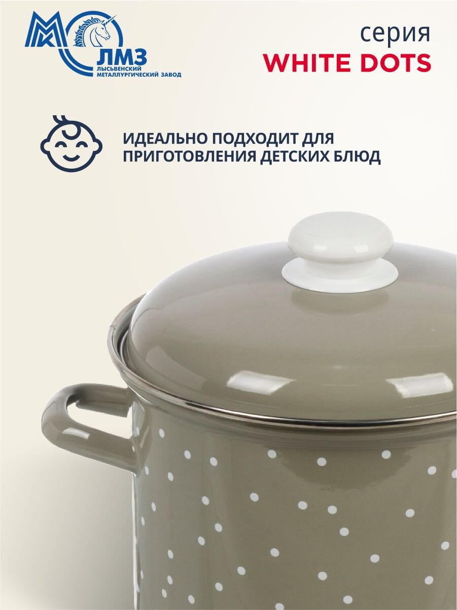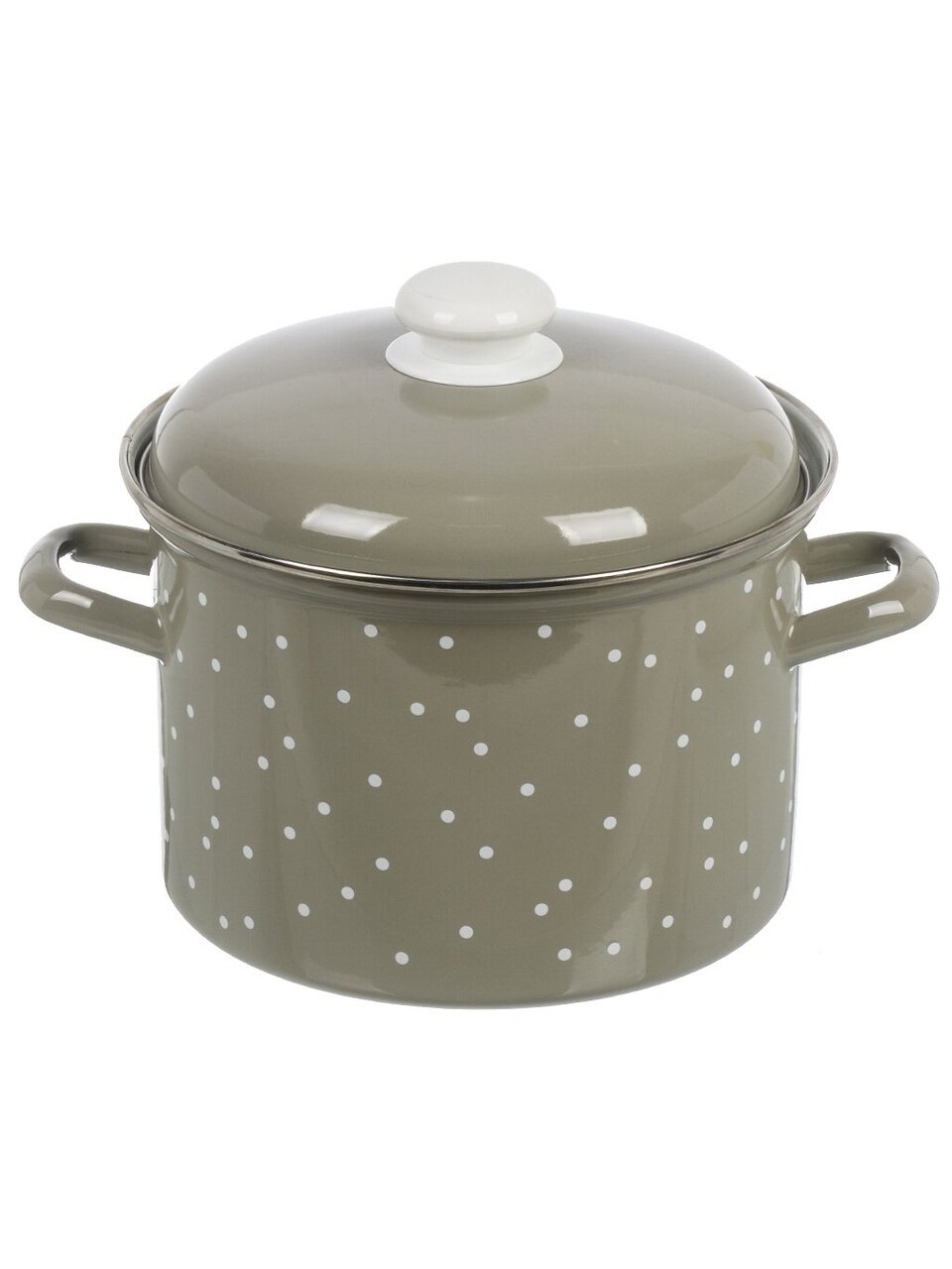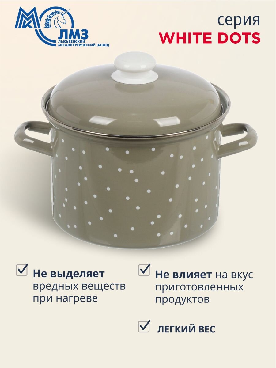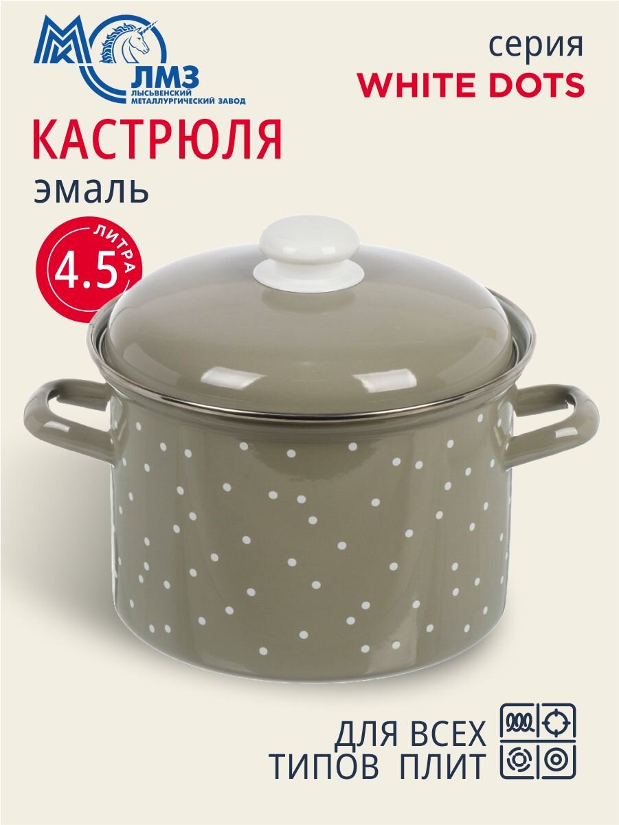 Кастрюля эмалированная ЛЗЭП White dots 4,5 л: оптимальный выбор для индукции, газовых и стеклокерамических плит. Долговечность, стиль и универсальность по выгодной цене.