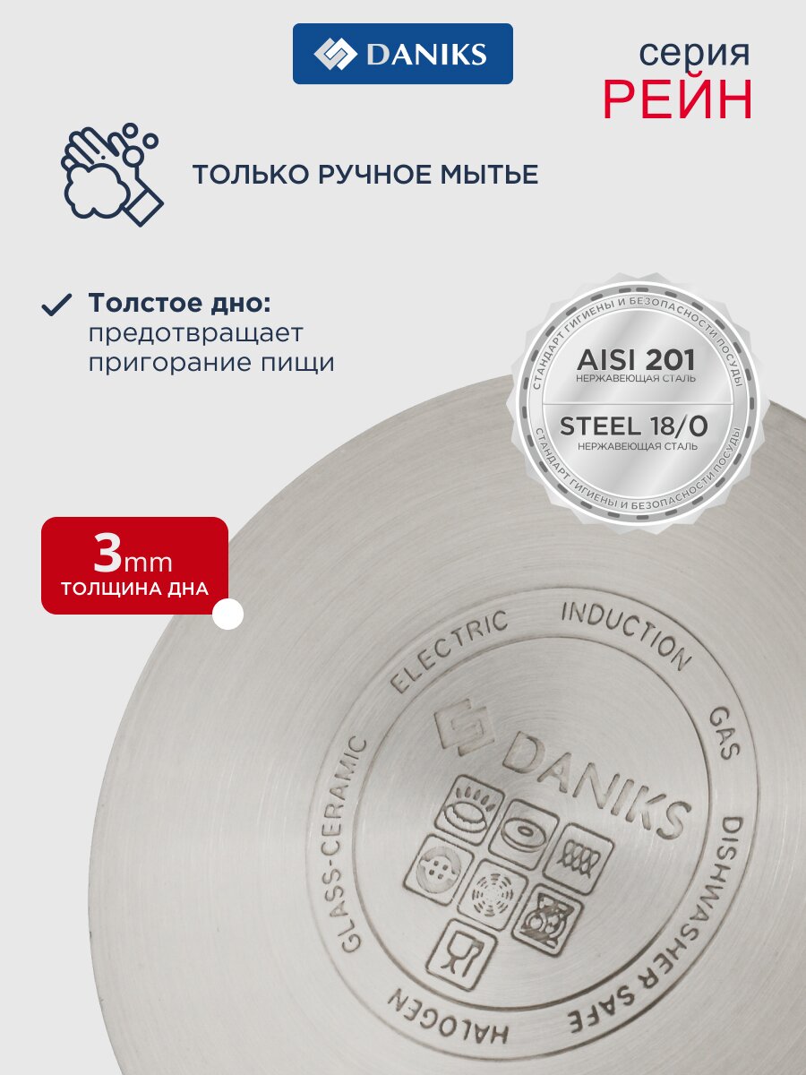 Daniks Рейн — отличный выбор для тех, кто ценит надёжность, универсальность и современный дизайн. Закажите эту кастрюлю с выгодой: гарантия 12 месяцев, быстрая доставка, проверенное качество от экспертов.