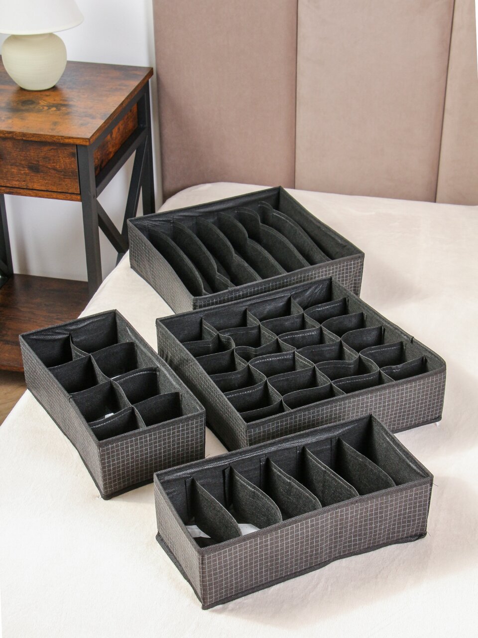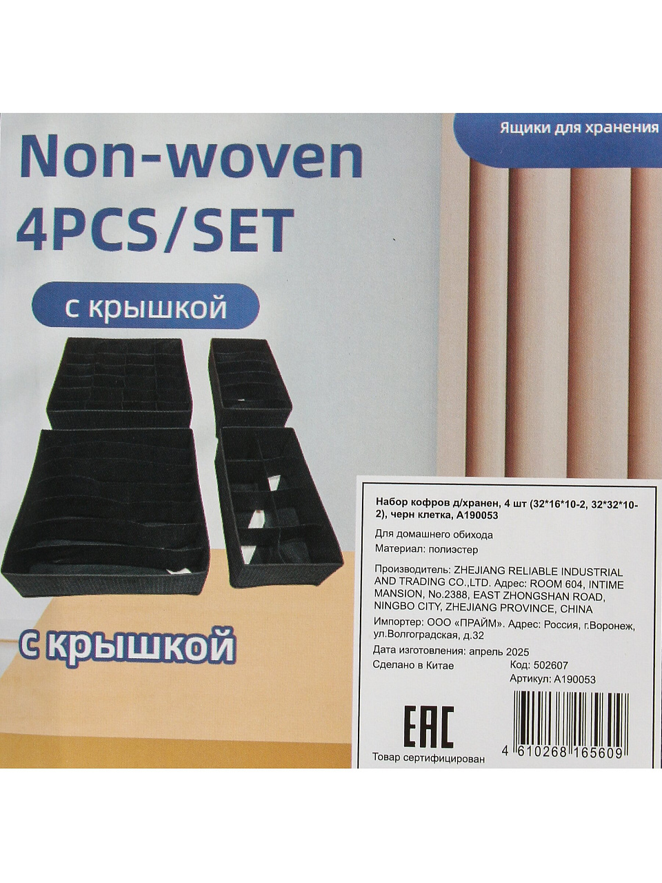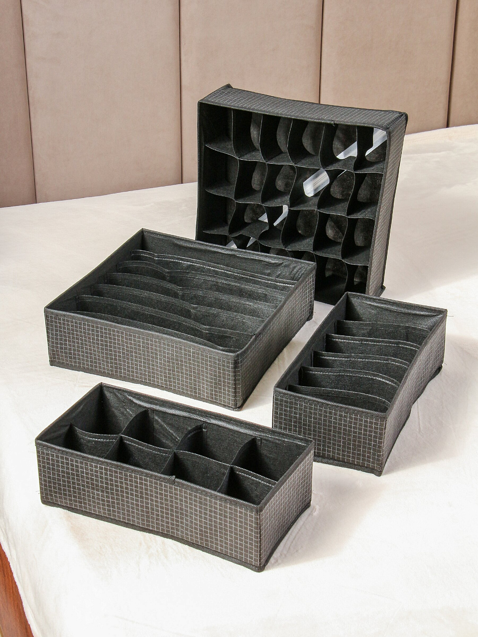 Набор кофров д/хранен, 4 шт (32*16*10-2; 32*32*10-2), черн клетка, A190053