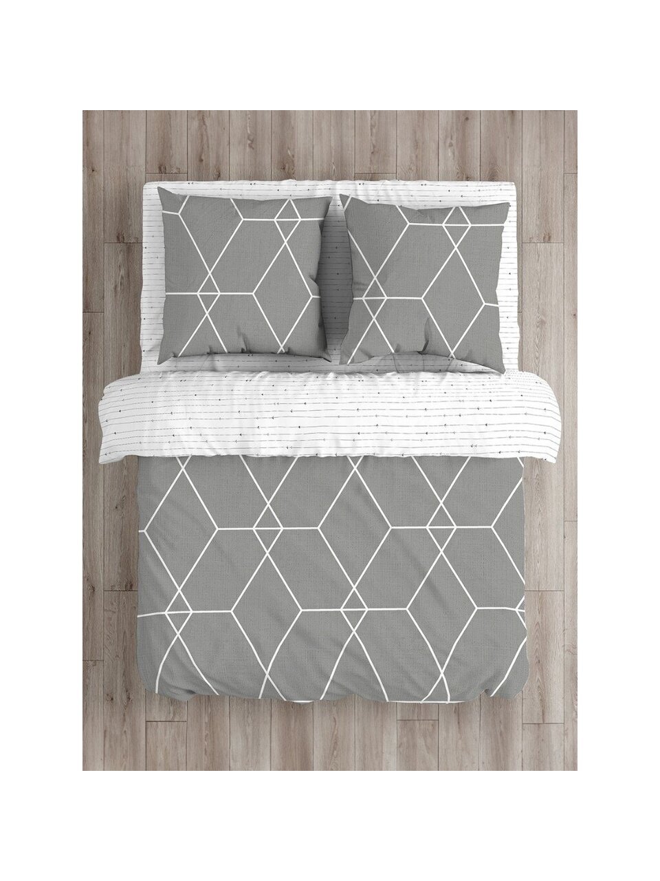 Да, постельное белье поставляется в подарочной упаковке и универсальном сером цвете с геометрическим принтом — отличный вариант для презента на новоселье или свадьбу.