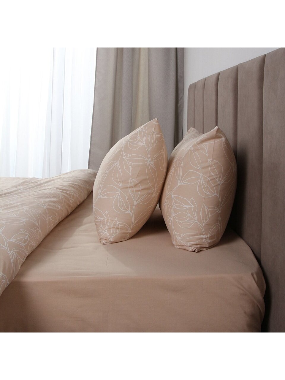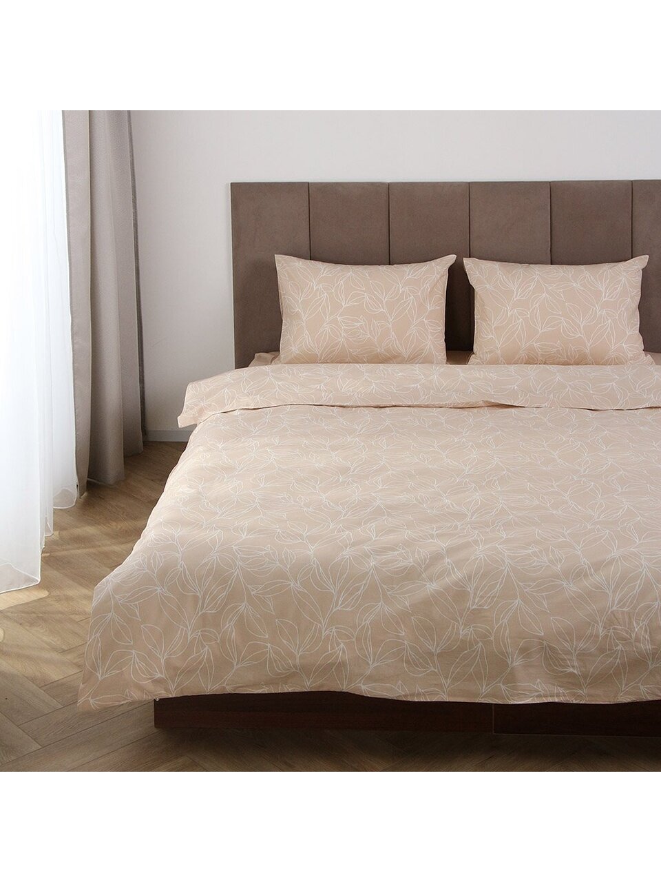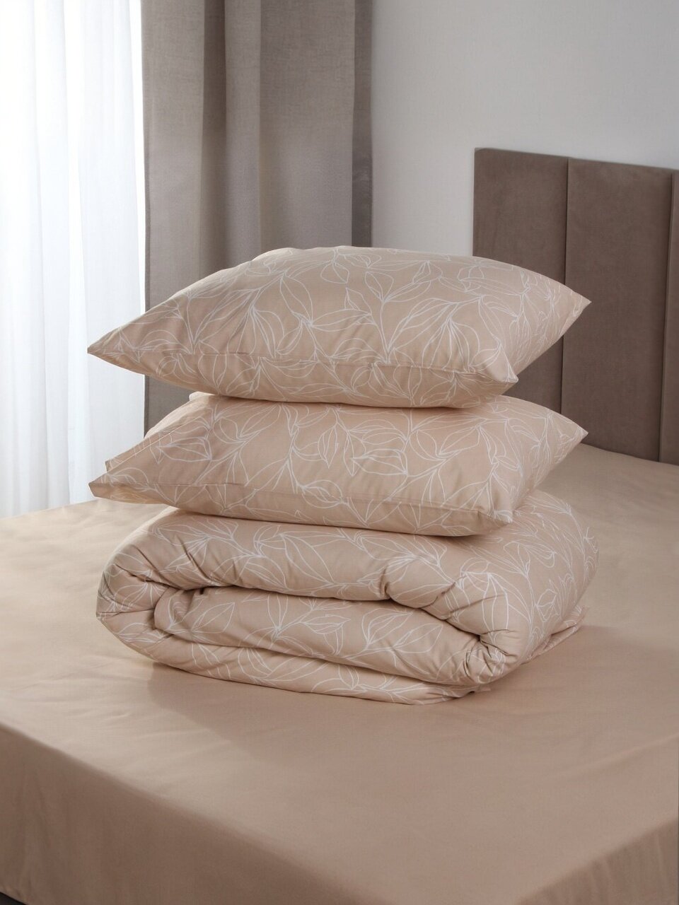 Постельное белье 2-спальный Silvano 20461: стильный бежевый комплект из поплина с хлопком — идеальный выбор для комфортного сна и подарка.