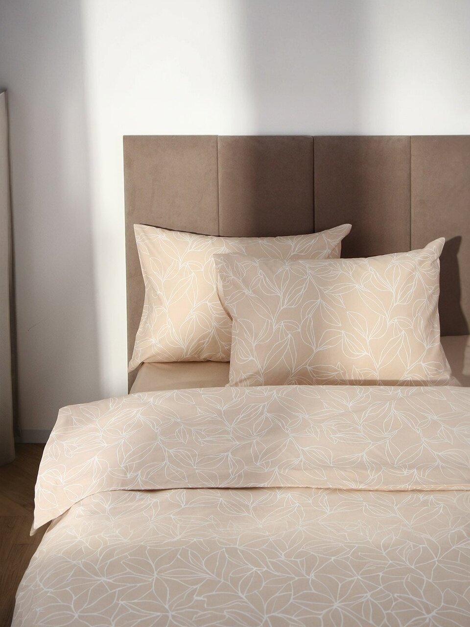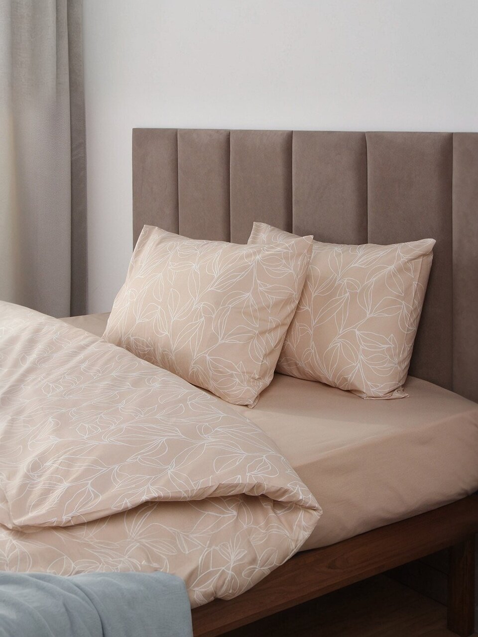 В наборе 3 предмета: 1 пододеяльник (175х215 см) и 2 наволочки (50х70 см). Материал — 100% хлопковый поплин.