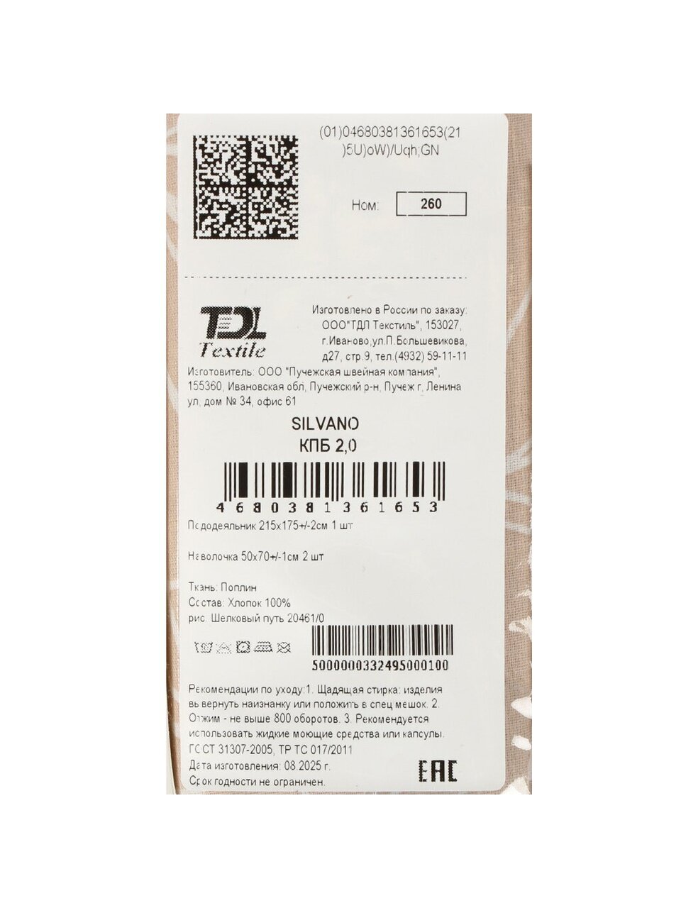 - Практичные параметры: пододеяльник 175х215 см, 2 наволочки 50х70, натуральный хлопок-поплин — оптимально для двухспальной кровати.