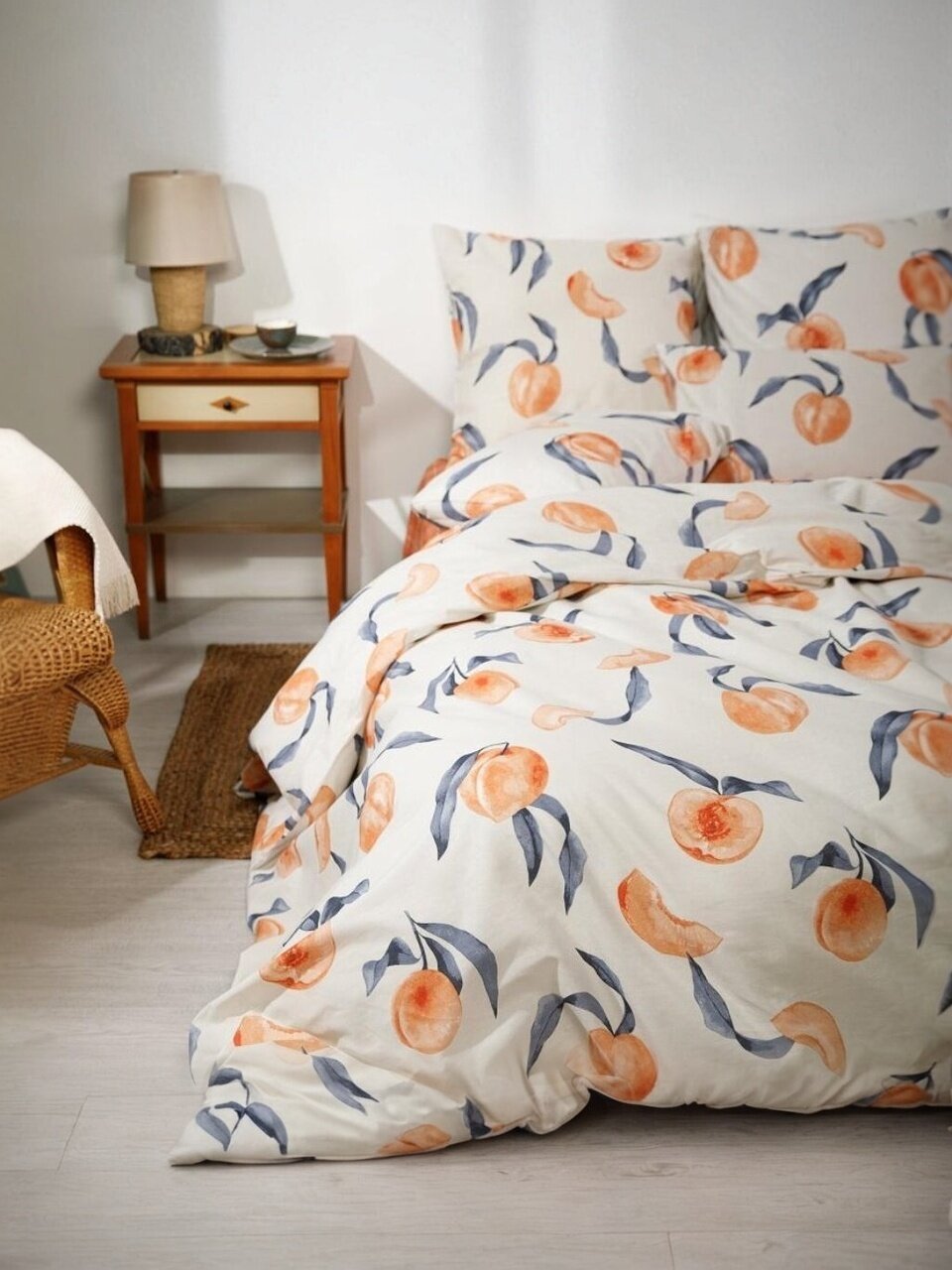 Многие покупатели спрашивают, что лучше для семейной пары: один большой пододеяльник или два отдельных? В этом наборе предусмотрено два пододеяльника 145×215 см — это удобно для тех, кто предпочитает личное одеяло. Комплект не оснащён простынёй на резинке, что облегчает глажку и подходит для стандартных и нестандартных матрасов. Благодаря подарочной упаковке, такой набор — отличное решение, если вы не знаете, что подарить на новоселье или свадьбу. Используйте его дома, на даче или в гостевом доме — универсальность и стильный дизайн «Сочный персик» подойдут к любому интерьеру.