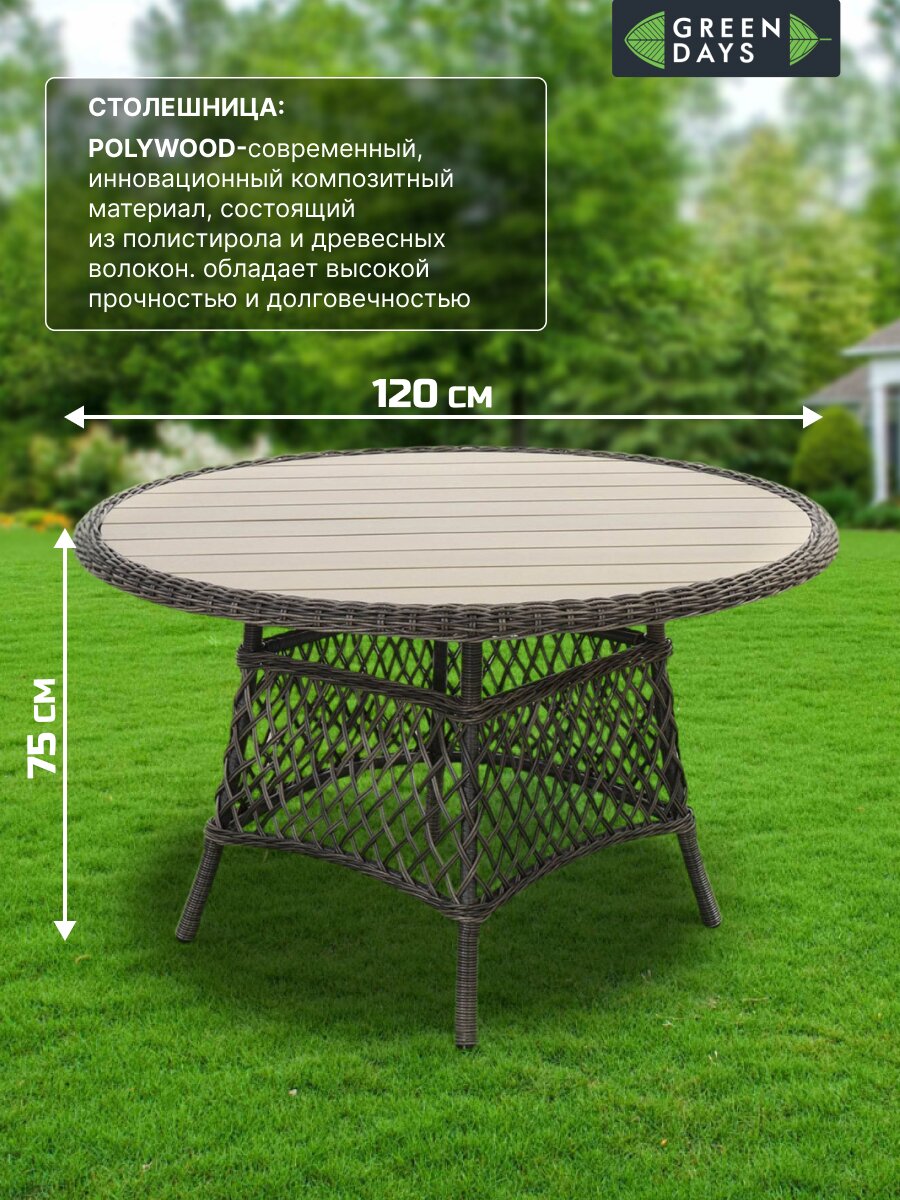 - Столешница изготовлена из материала Polywood (древесно-полимерный композит).