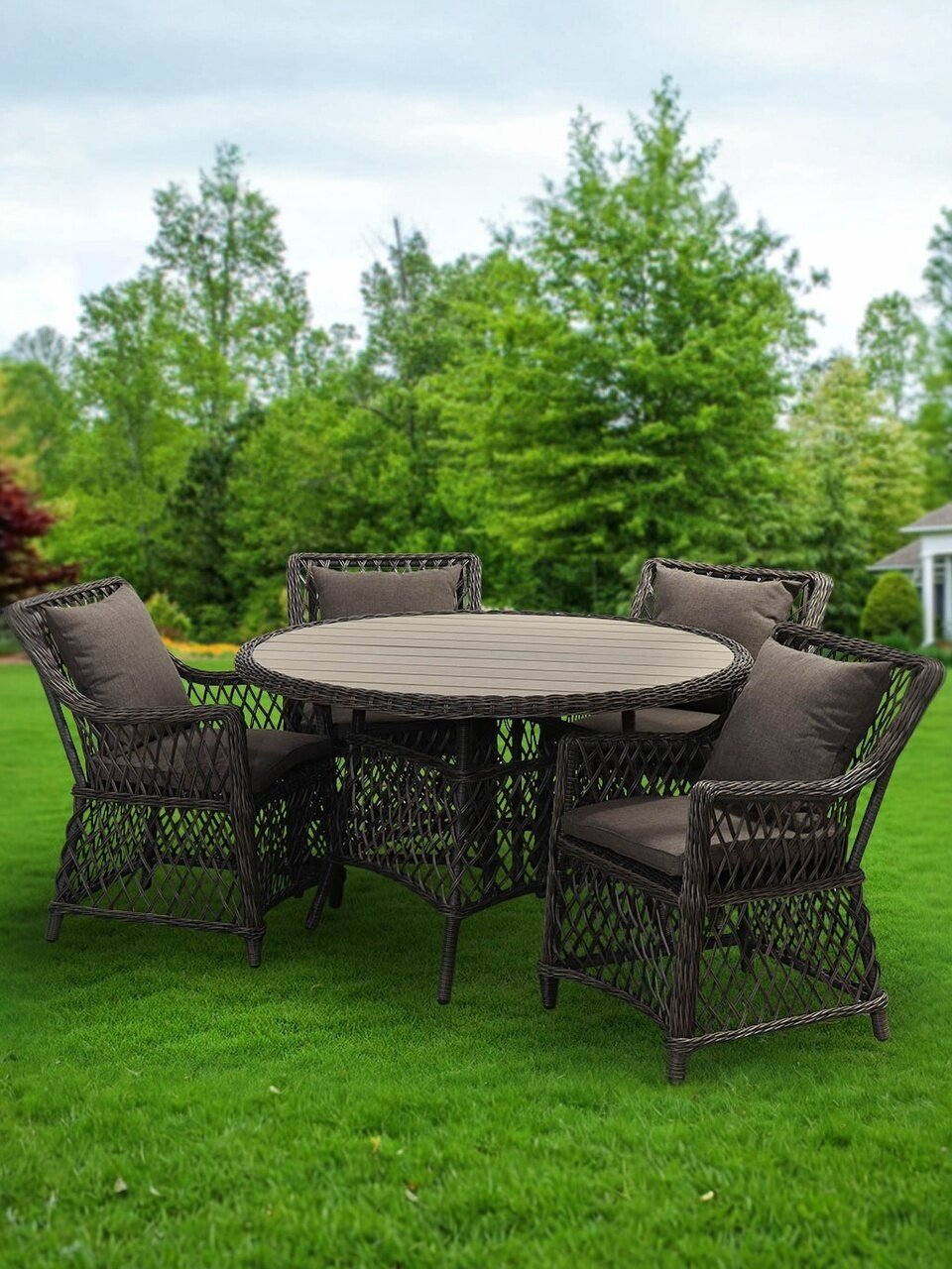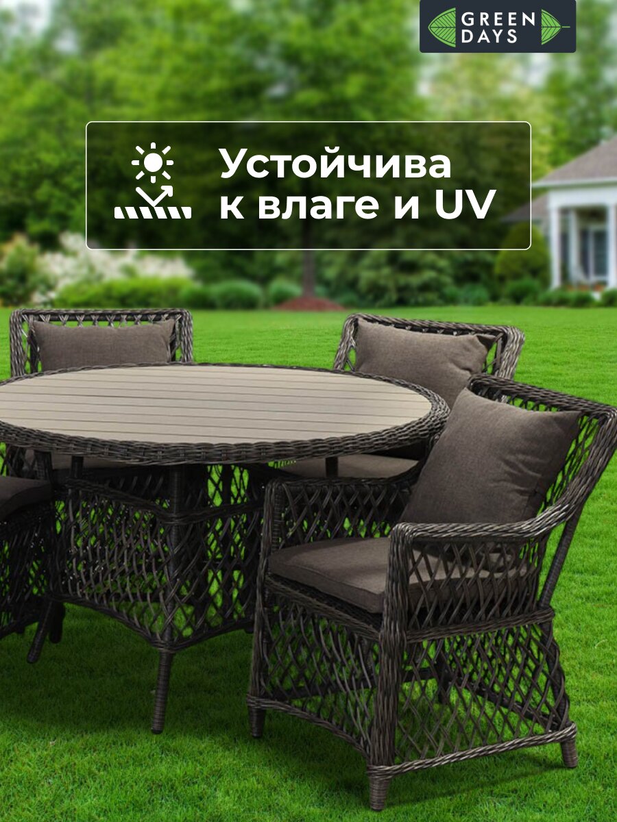Вы можете приобрести «Мебель садовая Green Days, Форео, темно-коричневая, стол, 122х122х75 см, 4 кресла, подушка серо-коричневая, CYH162W-2» и другие товары в нашем интернет-магазине в Серпухове по низким ценам и с бесплатным самовывозом.