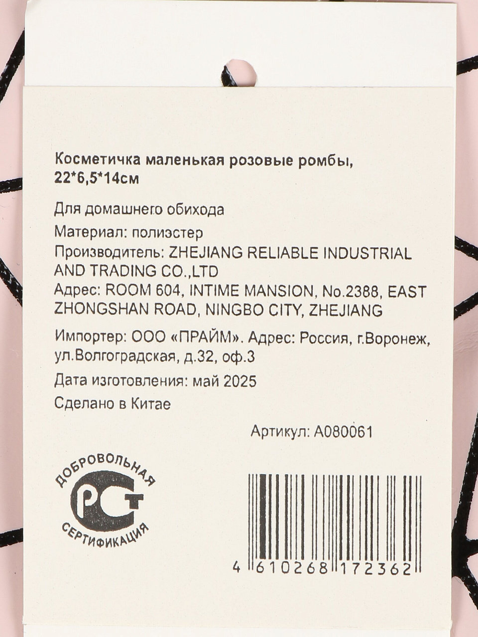 Косметичка маленькая розовые ромбы, 22Х6.5Х14см, A080061