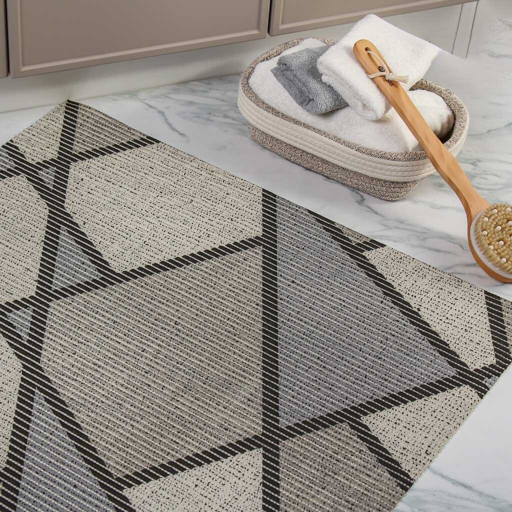 Коврик для ванной Homemat Aquatic 103G — это современное решение для тех, кто ищет, какой коврик выбрать для защиты от скольжения и быстрого высыхания пола. Вспененный ПВХ обеспечивает отличное сцепление с поверхностью, а геометрический рисунок не только добавляет стиль, но и усиливает антискользящий эффект. Благодаря длине 15 метров вы можете купить недорого коврик для ванной и нарезать его под индивидуальные размеры — это удобно для больших ванных комнат, душевых, бассейнов или прихожих.