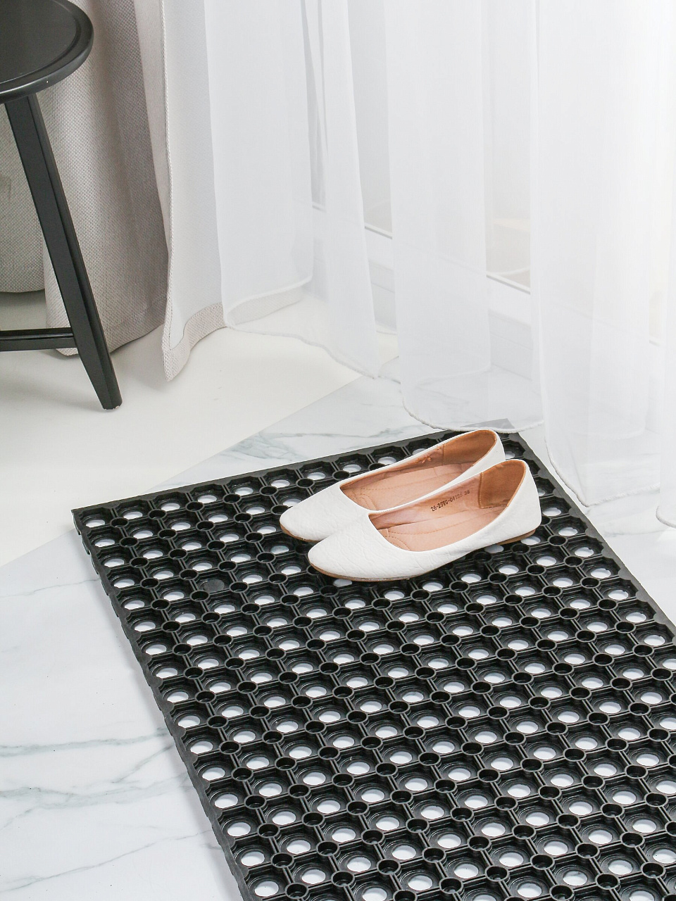 Придверный коврик надежно защитит помещение от уличной пыли и грязи.