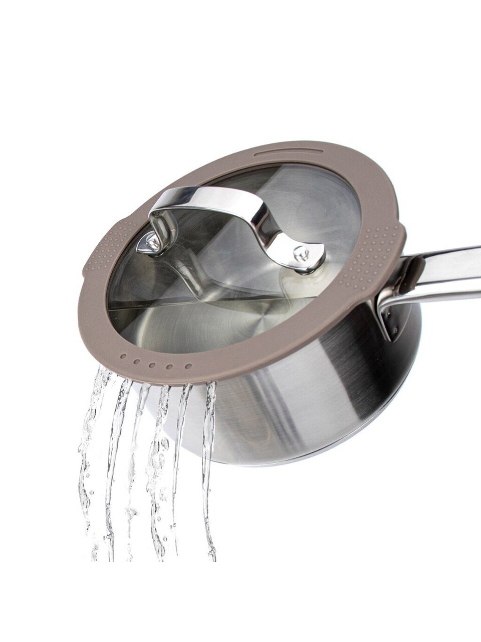 - Силиконовый обод на крышке позволяет бесшумно закрывать ковш, способствует более плотному прилеганию крышки, предотвращает появления сколов и царапин на посуде и кухонной поверхности.