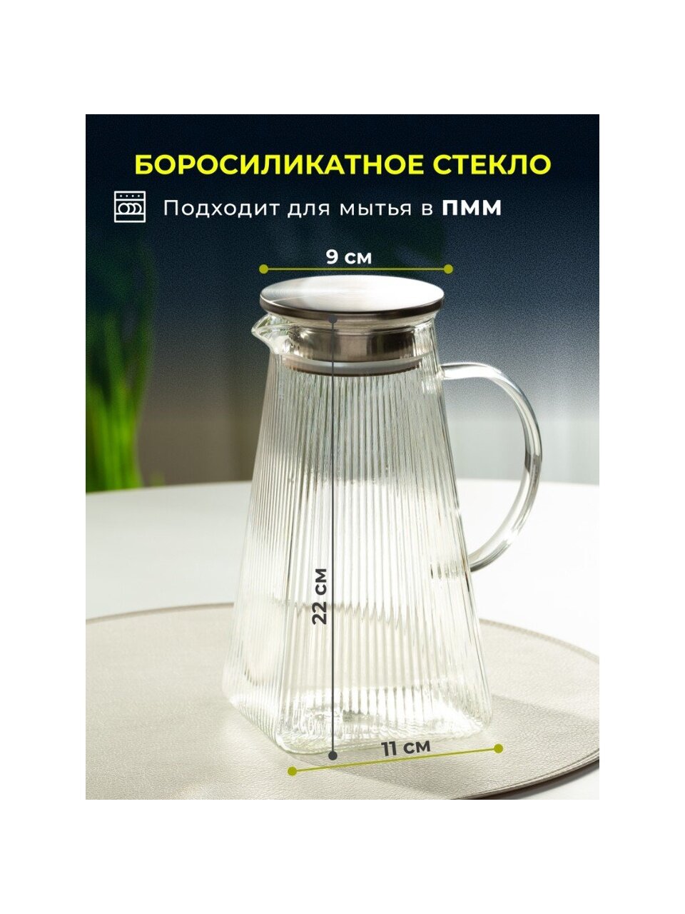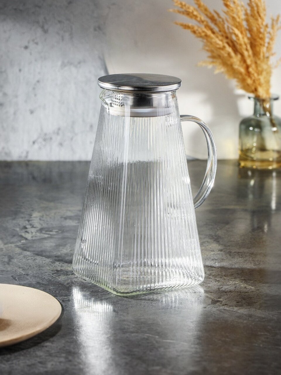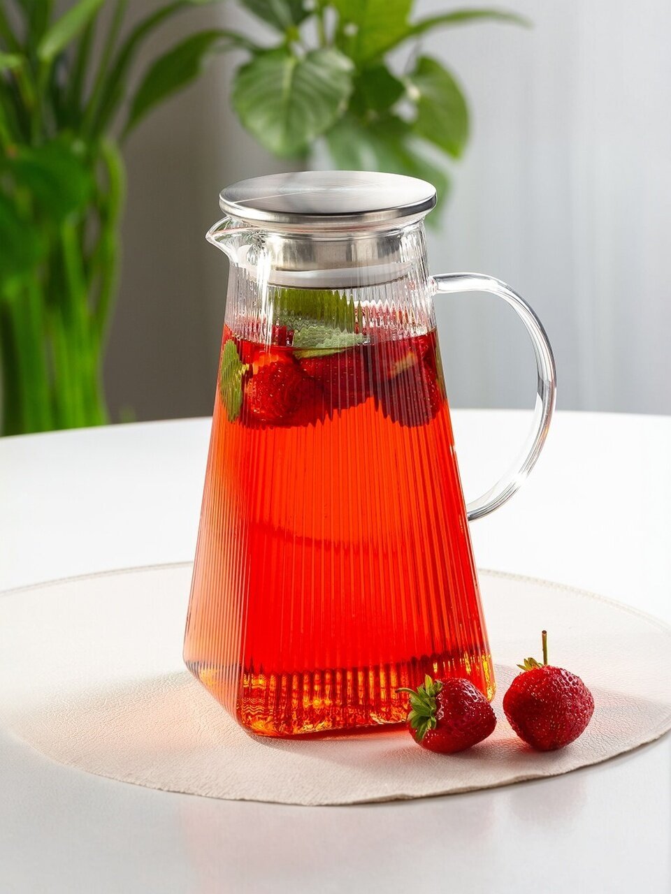 Изготовленный из боросиликатного стекла, кувшин сочетает в себе прочность и изящество. Этот материал известен своей устойчивостью к высоким температурам и механическим повреждениям, что делает его идеальным для использования в повседневной жизни. Объем 1.6 литра позволяет вместить достаточное количество напитка для всей семьи или компании друзей. Крышка, входящая в комплект, обеспечивает сохранение вкуса и аромата, предотвращая попадание посторонних запахов.
