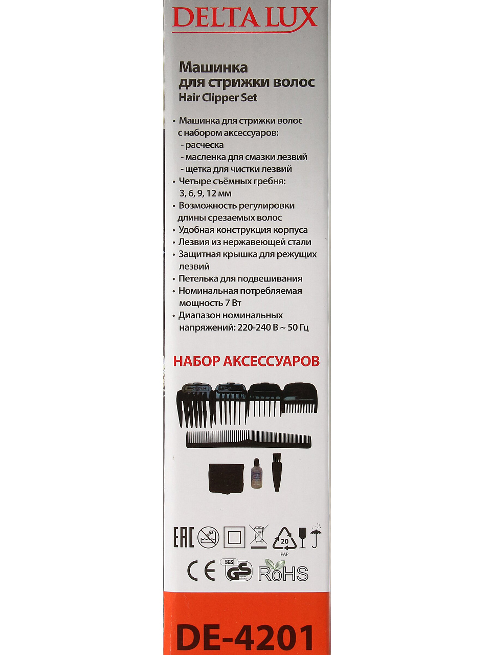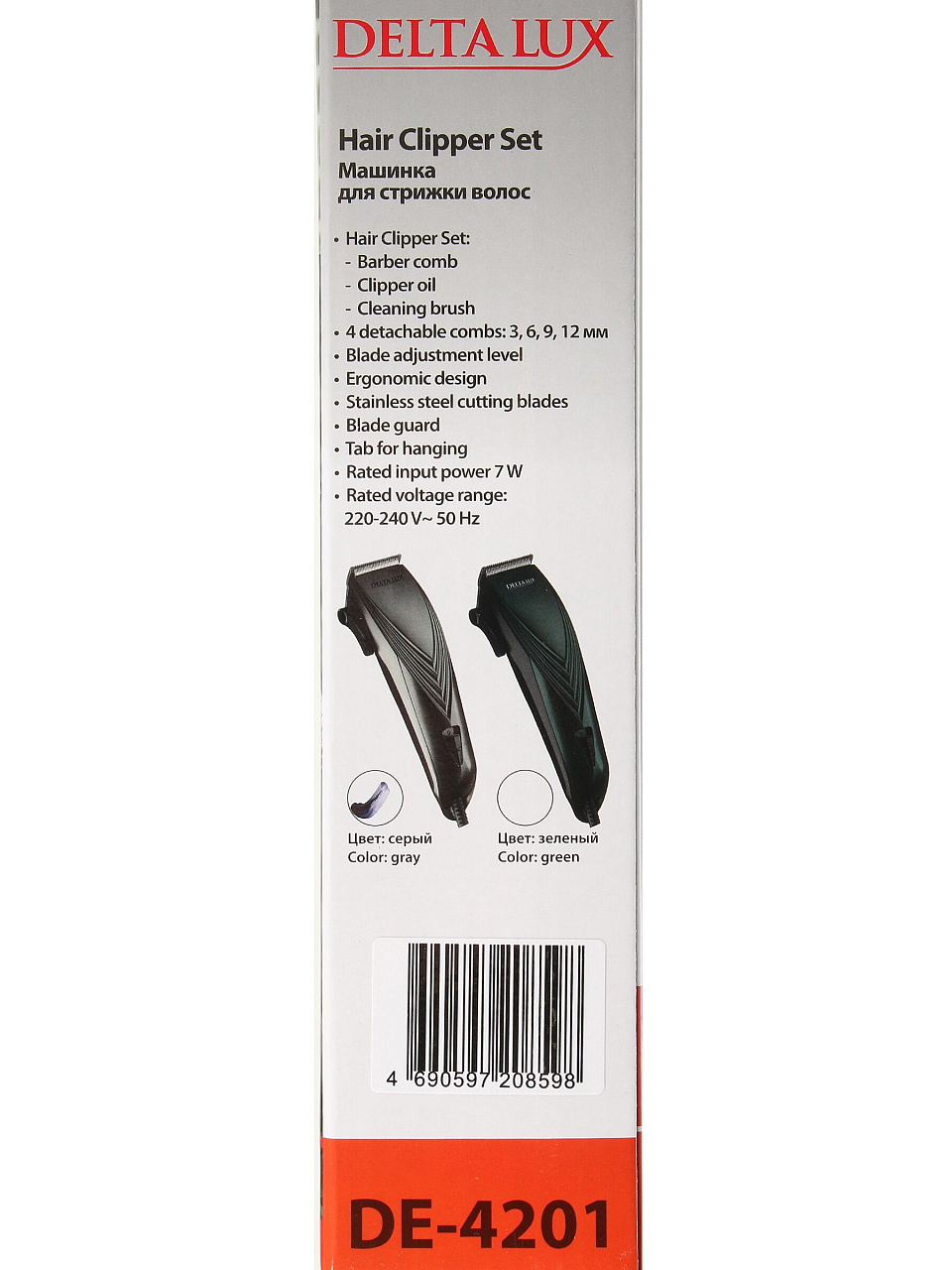 Машинка для стрижки Delta Lux DE-4201: 4 насадки, 7 Вт — точная стрижка дома и на даче, гарантия 12 месяцев, выгодная покупка без переплат.