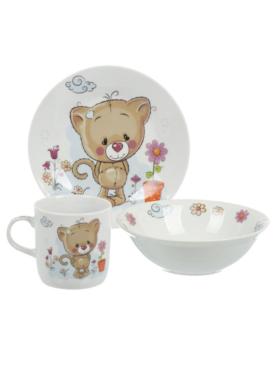 Набор включает в себя кружку, тарелку и салатник. Белый цвет посуды добавляет элегантности и стиля, а изображение котенка придаст игривости и сделает каждый прием пищи более увлекательным. Этот набор идеально подходит для использования в микроволновой печи и посудомоечной машине, что делает его практичным и удобным в уходе.