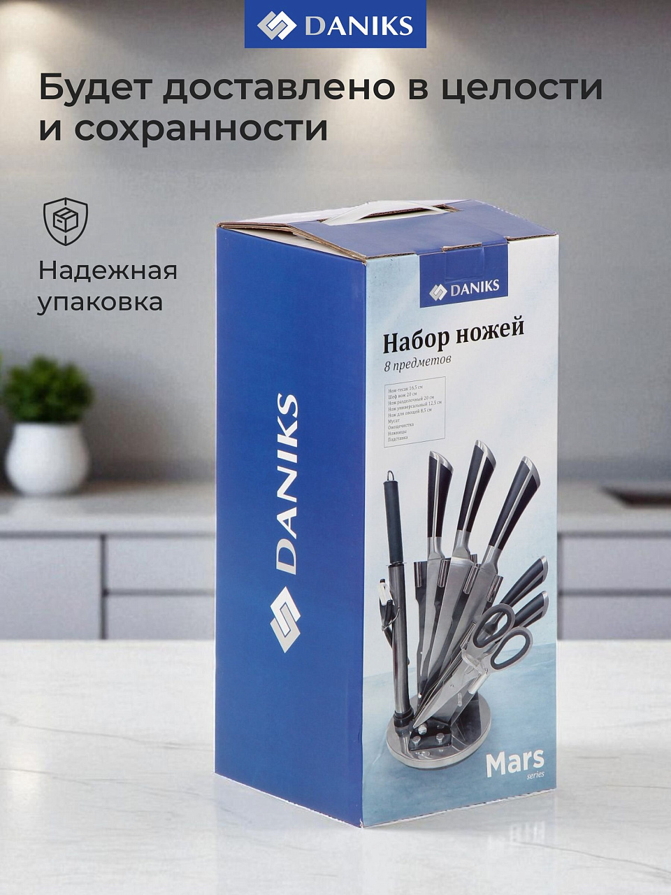 Преимущества покупки: набор ножей Daniks — это инвестиция в качество, надежность и эстетичный внешний вид кухни. Экономия времени, легкость ухода и универсальность делают его незаменимым помощником для любой хозяйки или хозяина.
