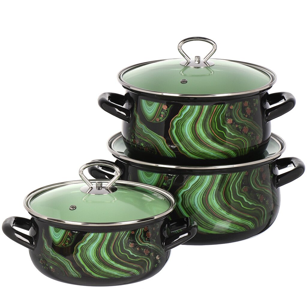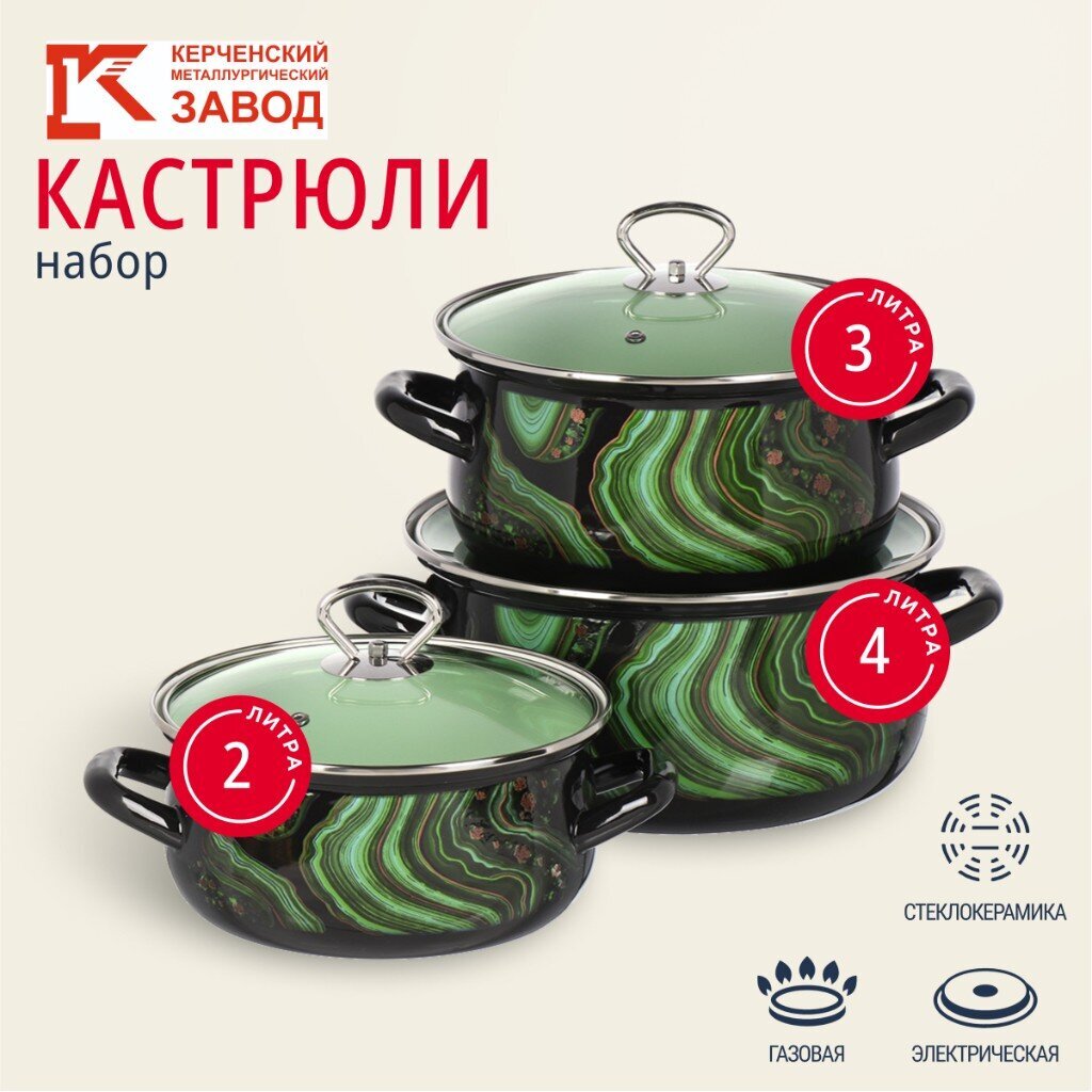 Набор эмалированных кастрюль 2/3/4 л Керченский металлургический завод — стильный черный дизайн, долговечность, универсальность для дома и дачи