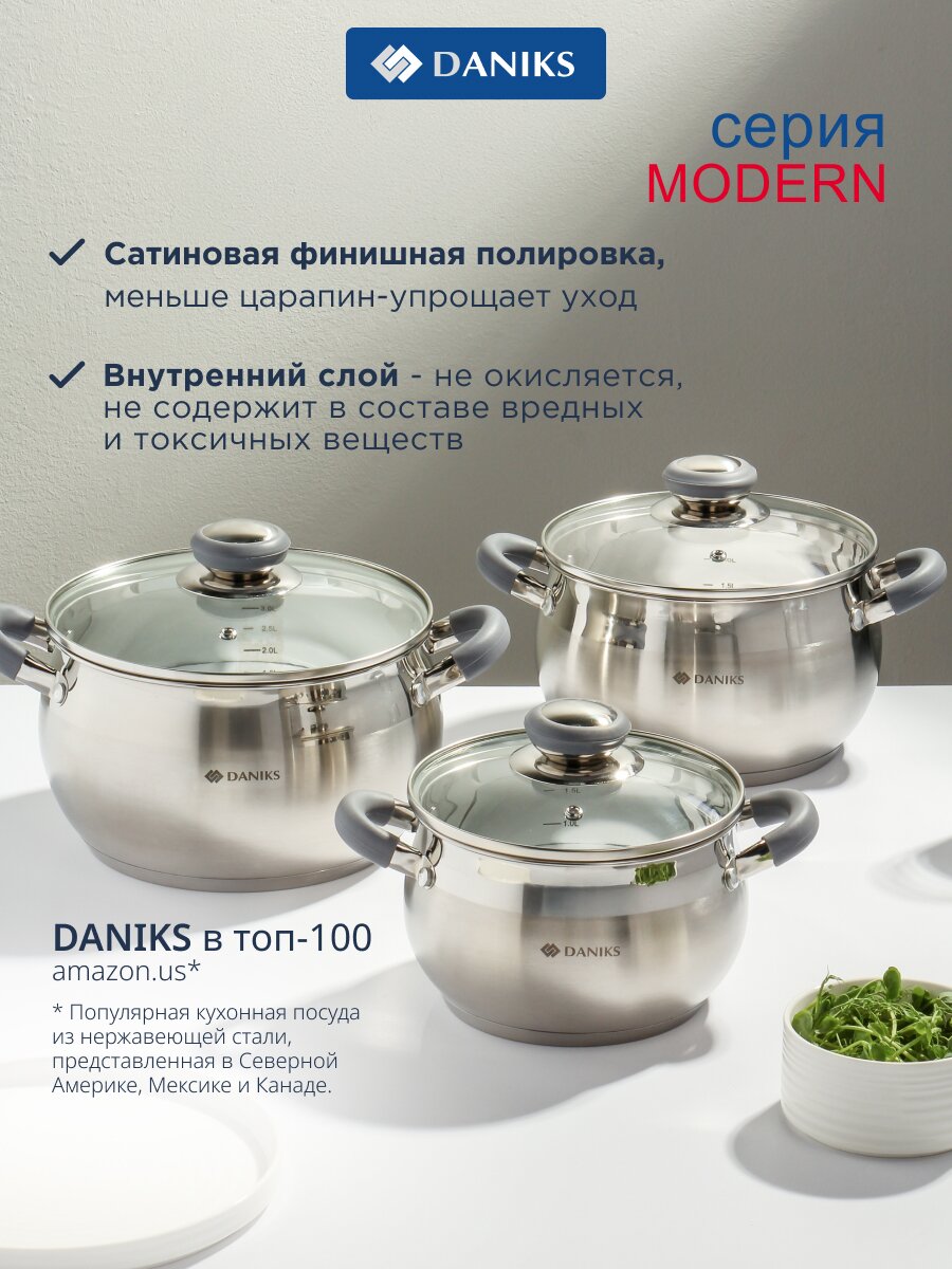 Закажите набор посуды Daniks Модерн серый сейчас — получите универсальное решение для кухни с гарантией долговечности и выгодной ценой. Быстрая доставка по России, актуальные акции и поддержка специалистов магазина.